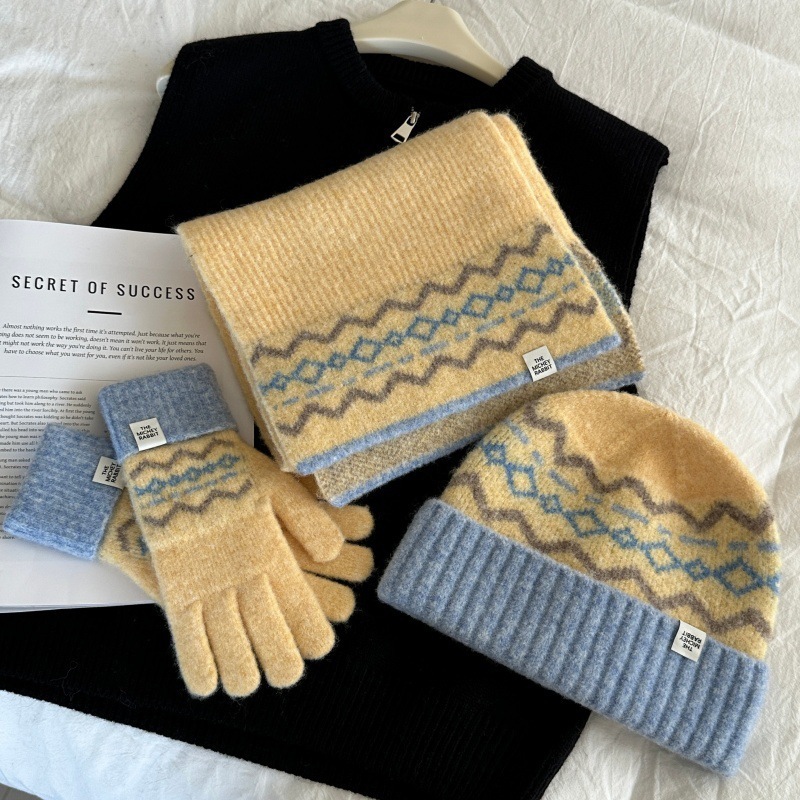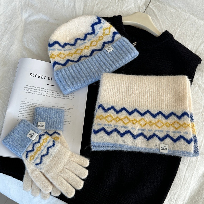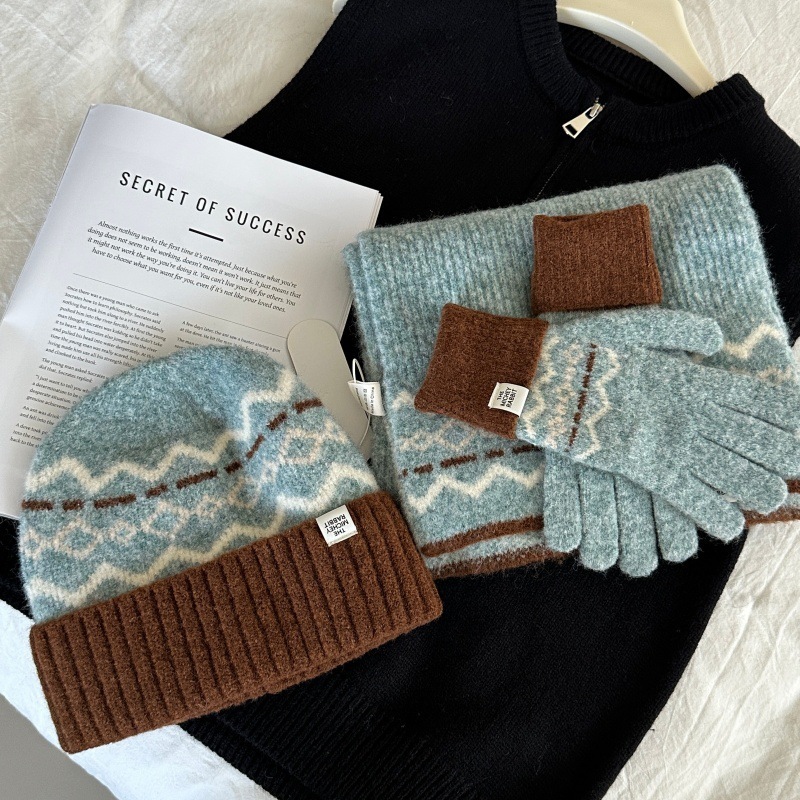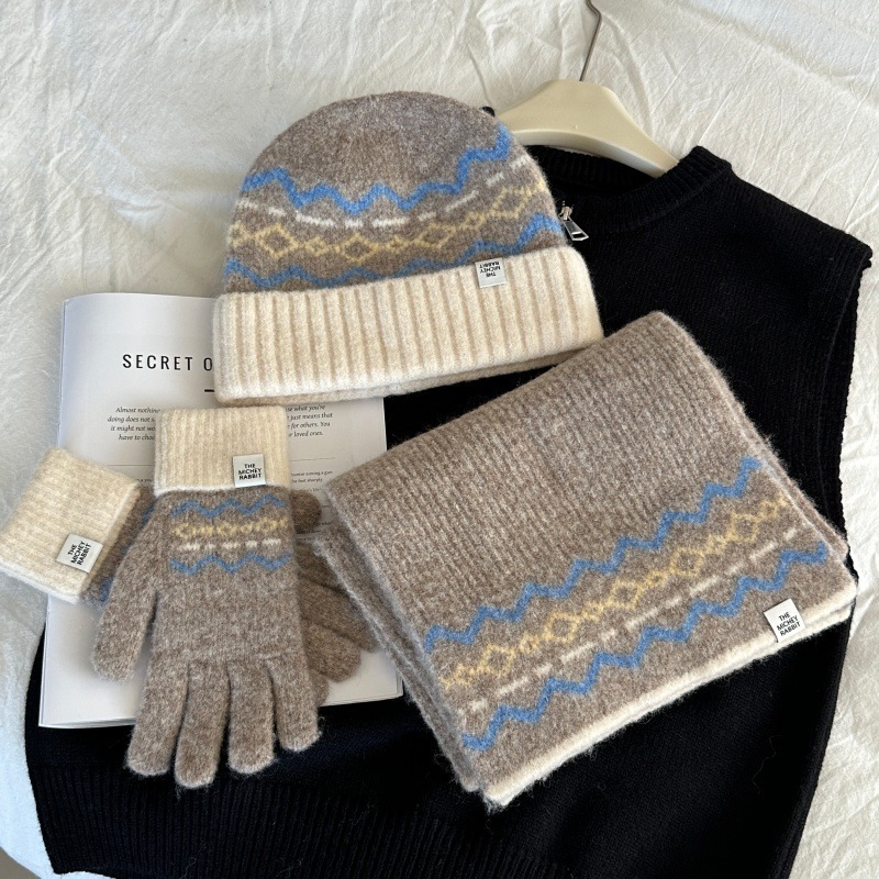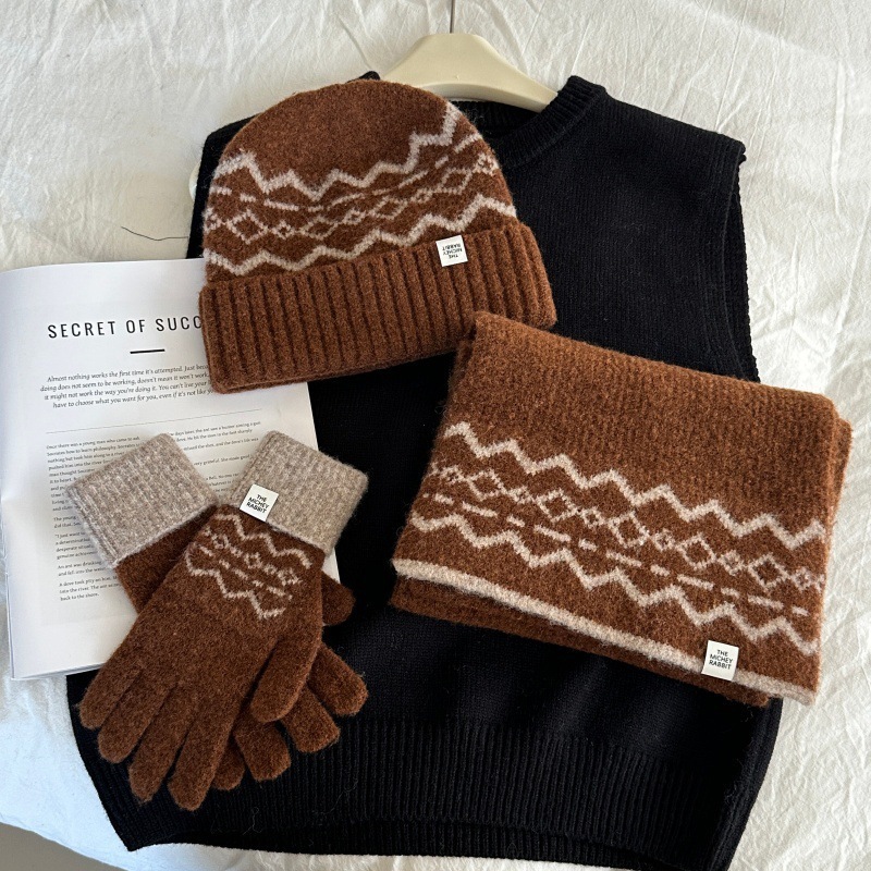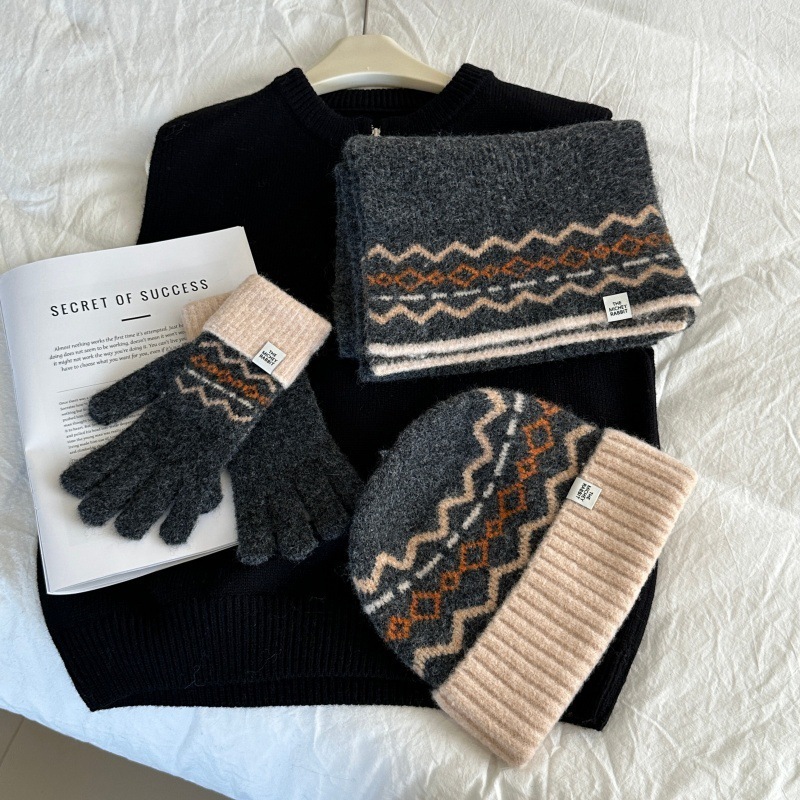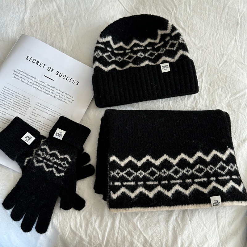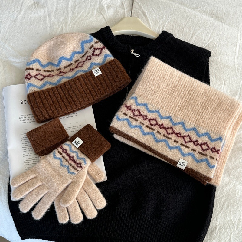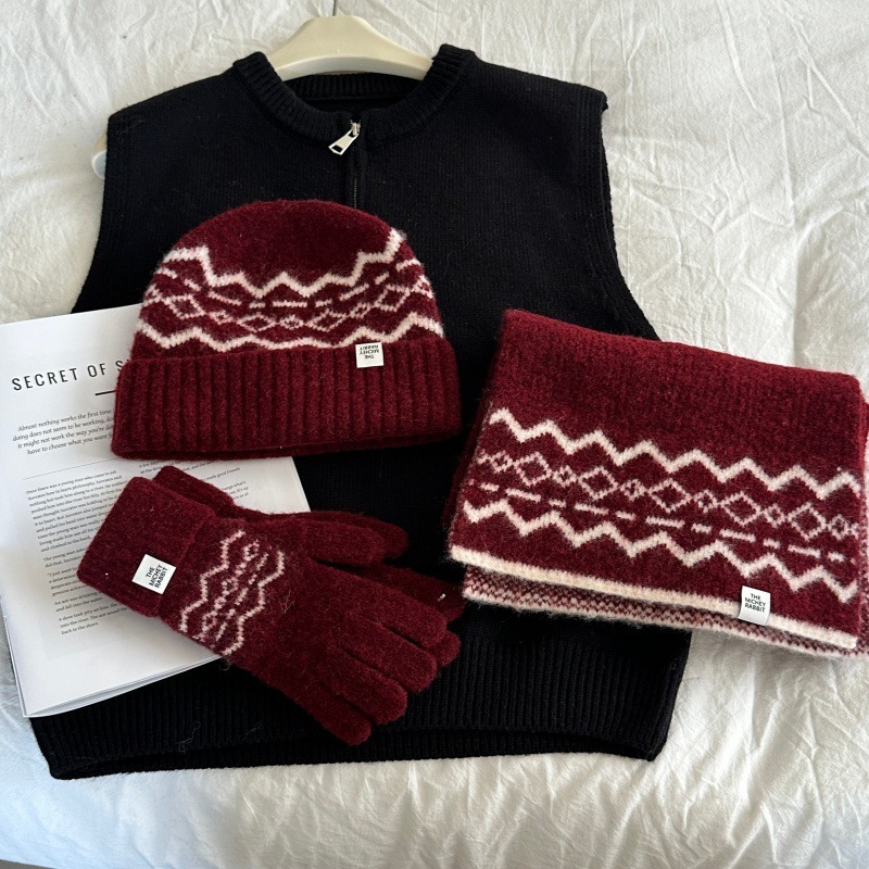 フェアアイルクリスマスウール帽子スカーフ手袋暖かい耳保護ニット帽トレンド