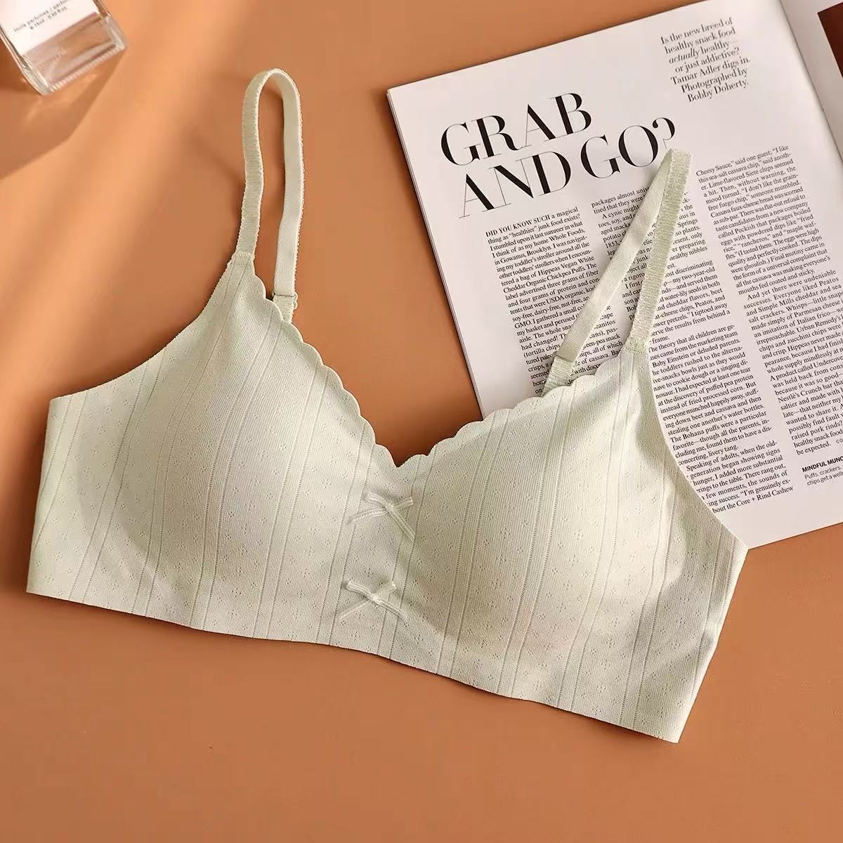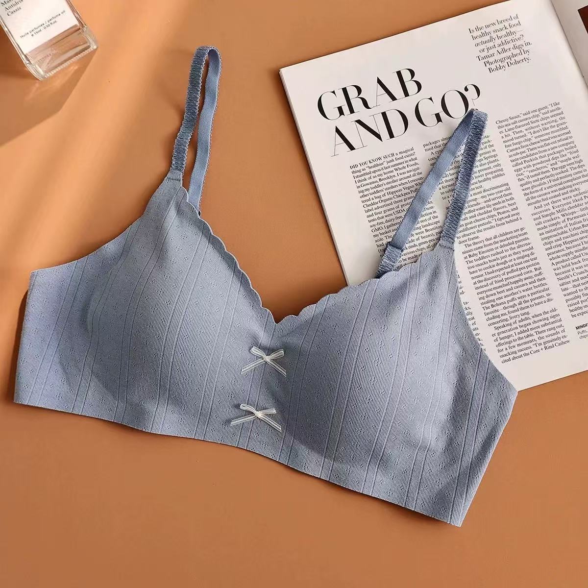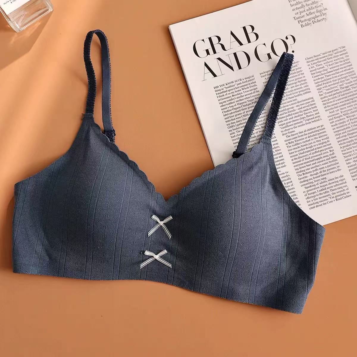 快適下着 女性 小胸を寄せ上げて大きく見せる ワイヤーなし 日本風 可愛らしい薄手リボンブラジャー