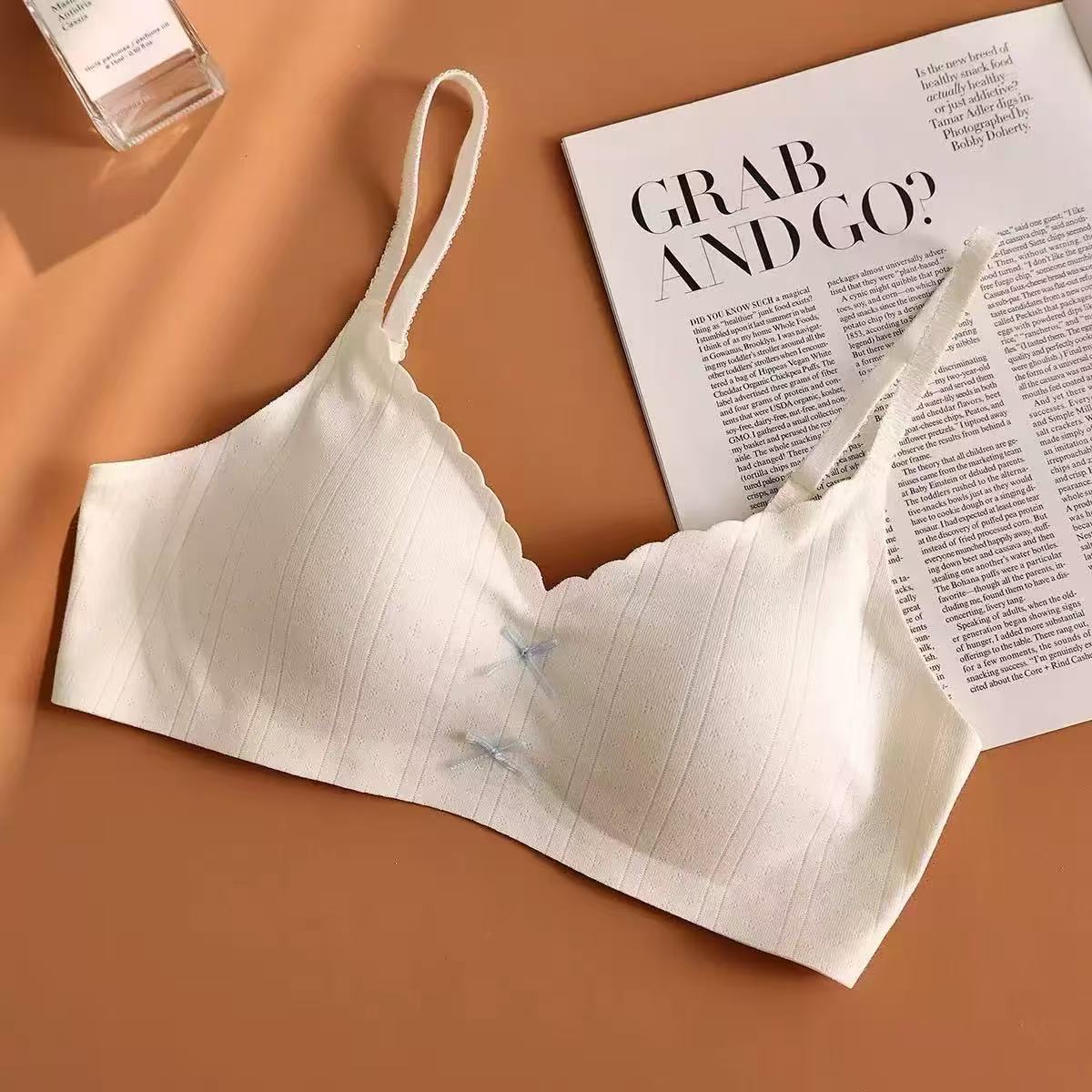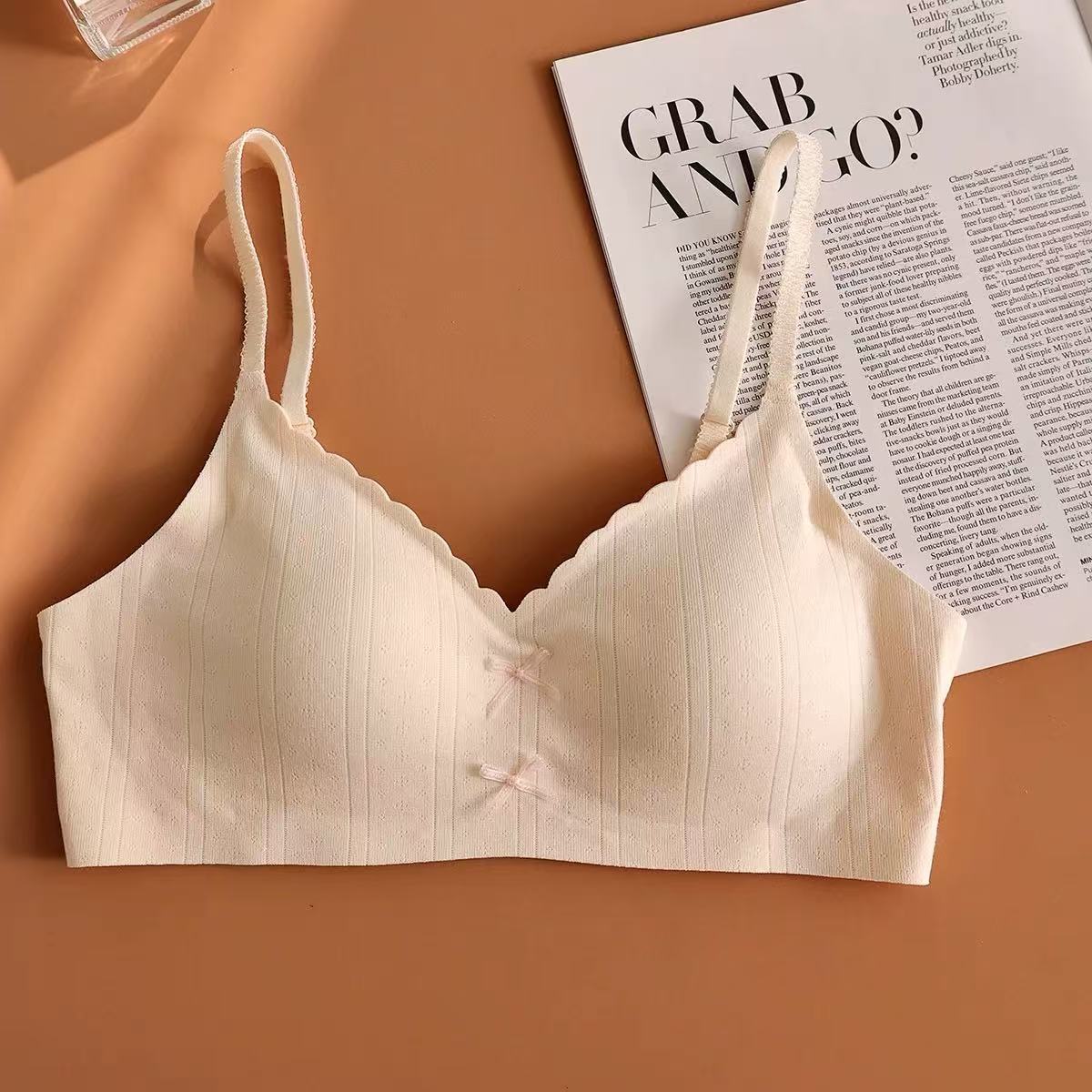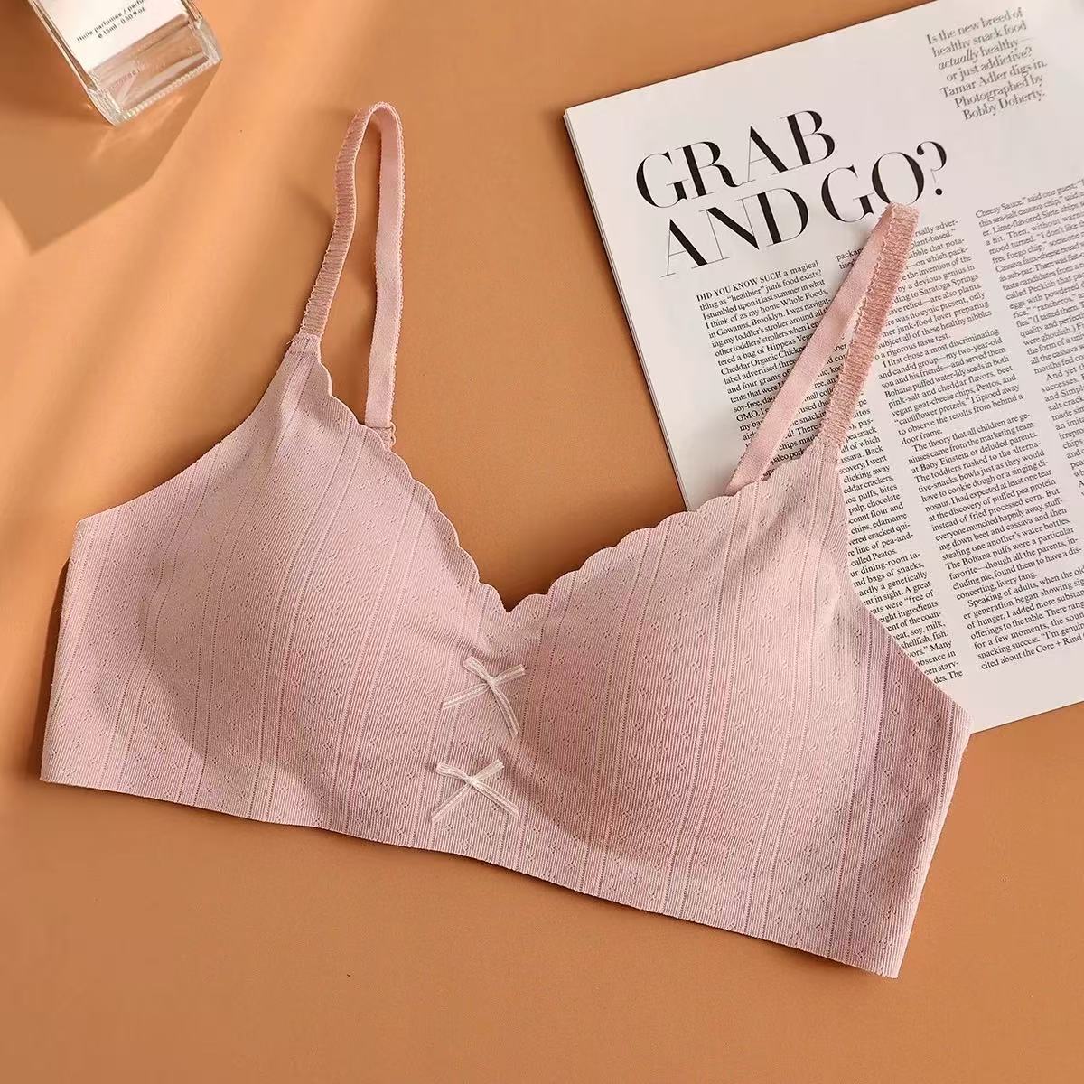 快適下着 女性 小胸を寄せ上げて大きく見せる ワイヤーなし 日本風 可愛らしい薄手リボンブラジャー