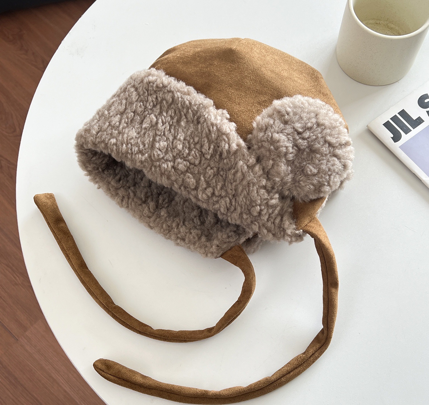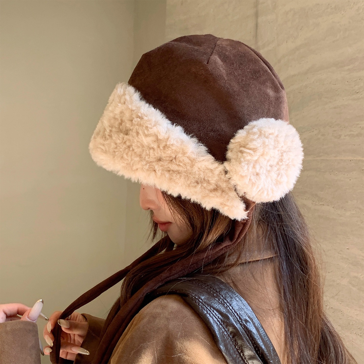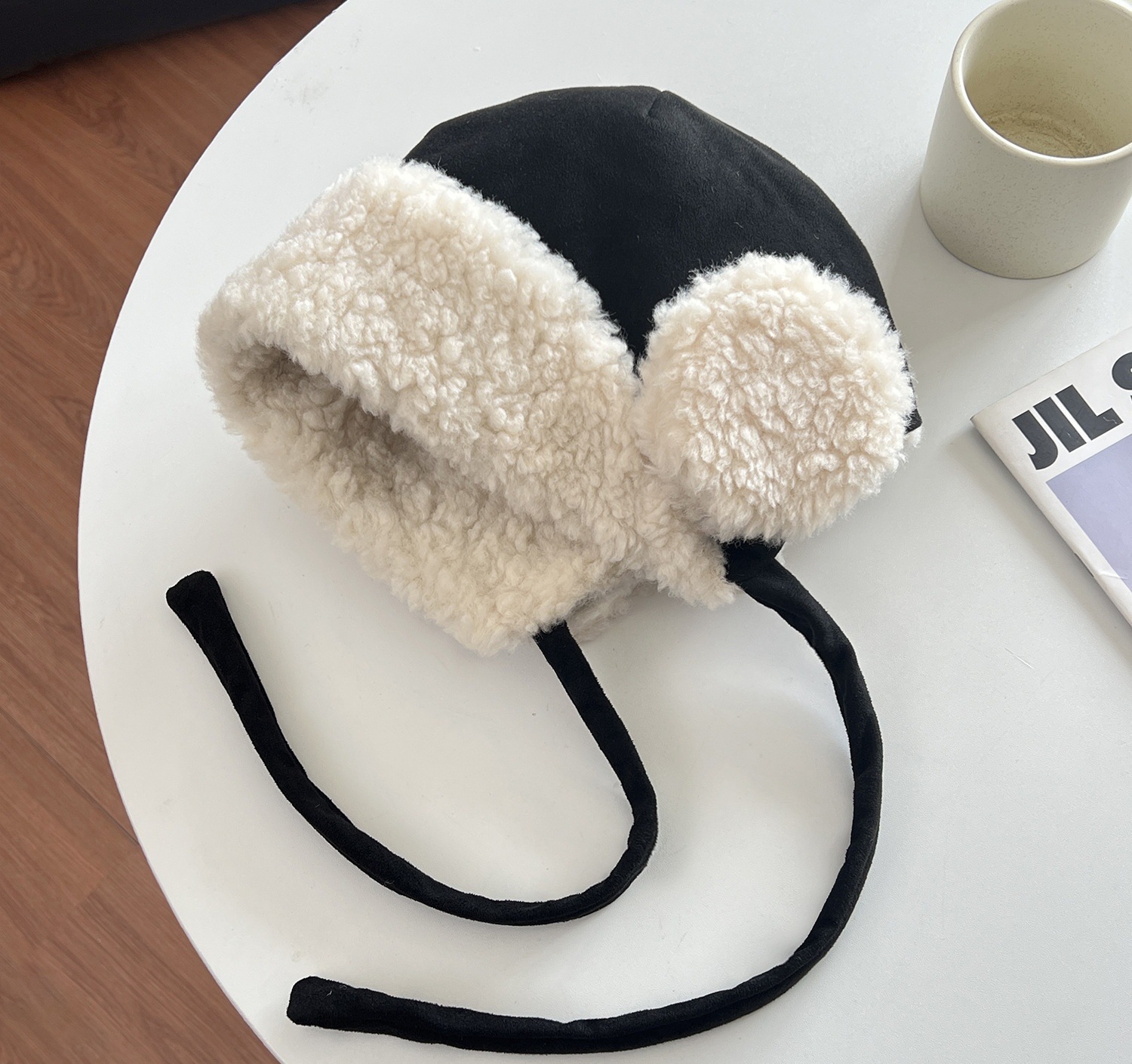 厚くて暖かいぬいぐるみ耳保護サイクリング防寒ストラップ雷峰帽子顔が見える小さな包頭帽子