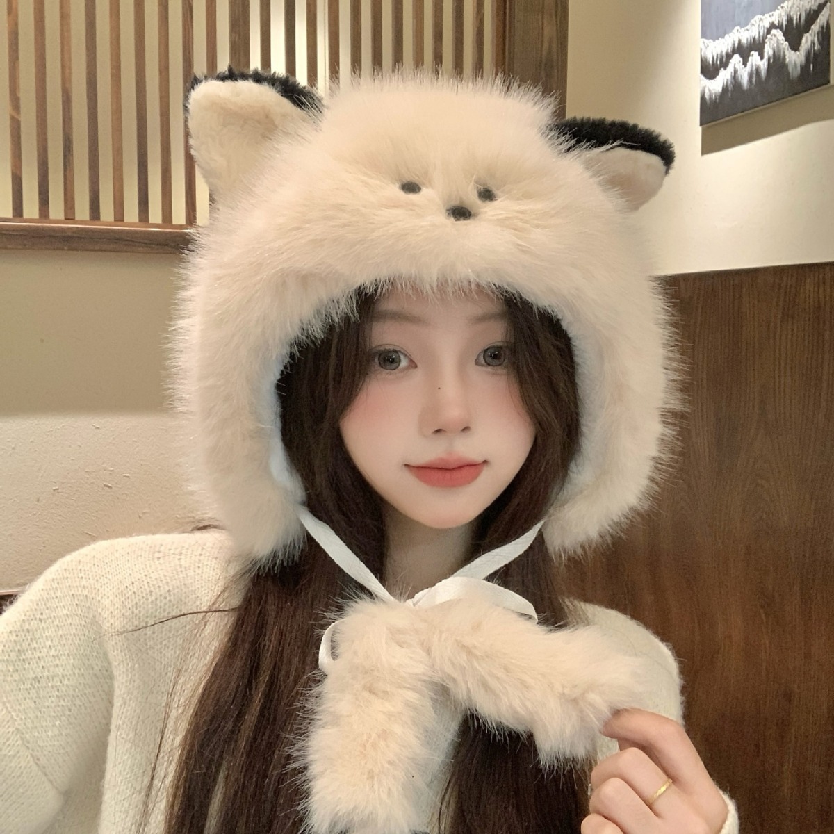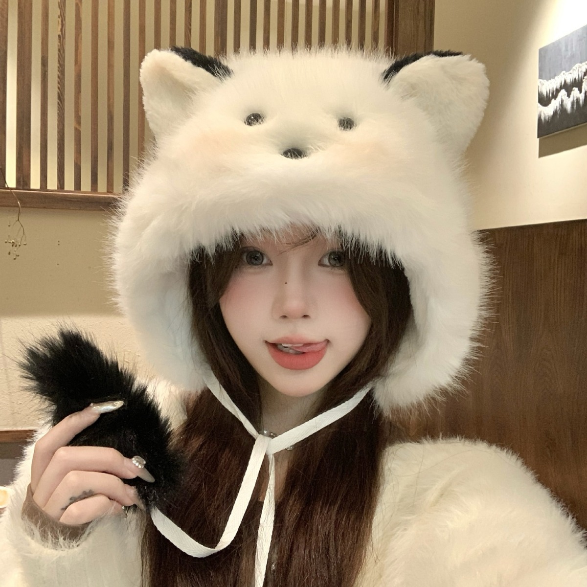 赤面猫ぬいぐるみ帽子冬かわいい漫画雷峰帽子アウトドア暖かくベルベットの厚みのあるサイクリング