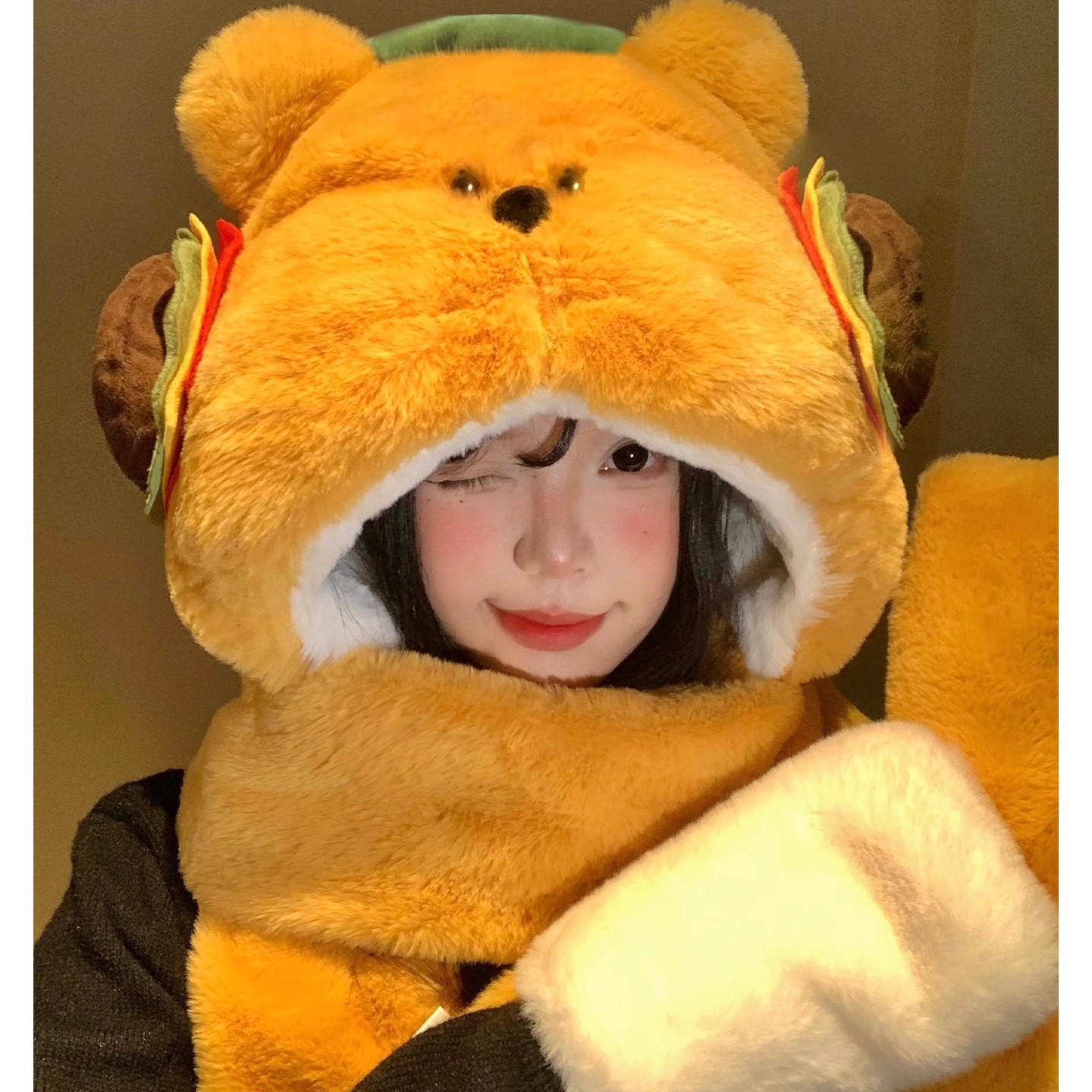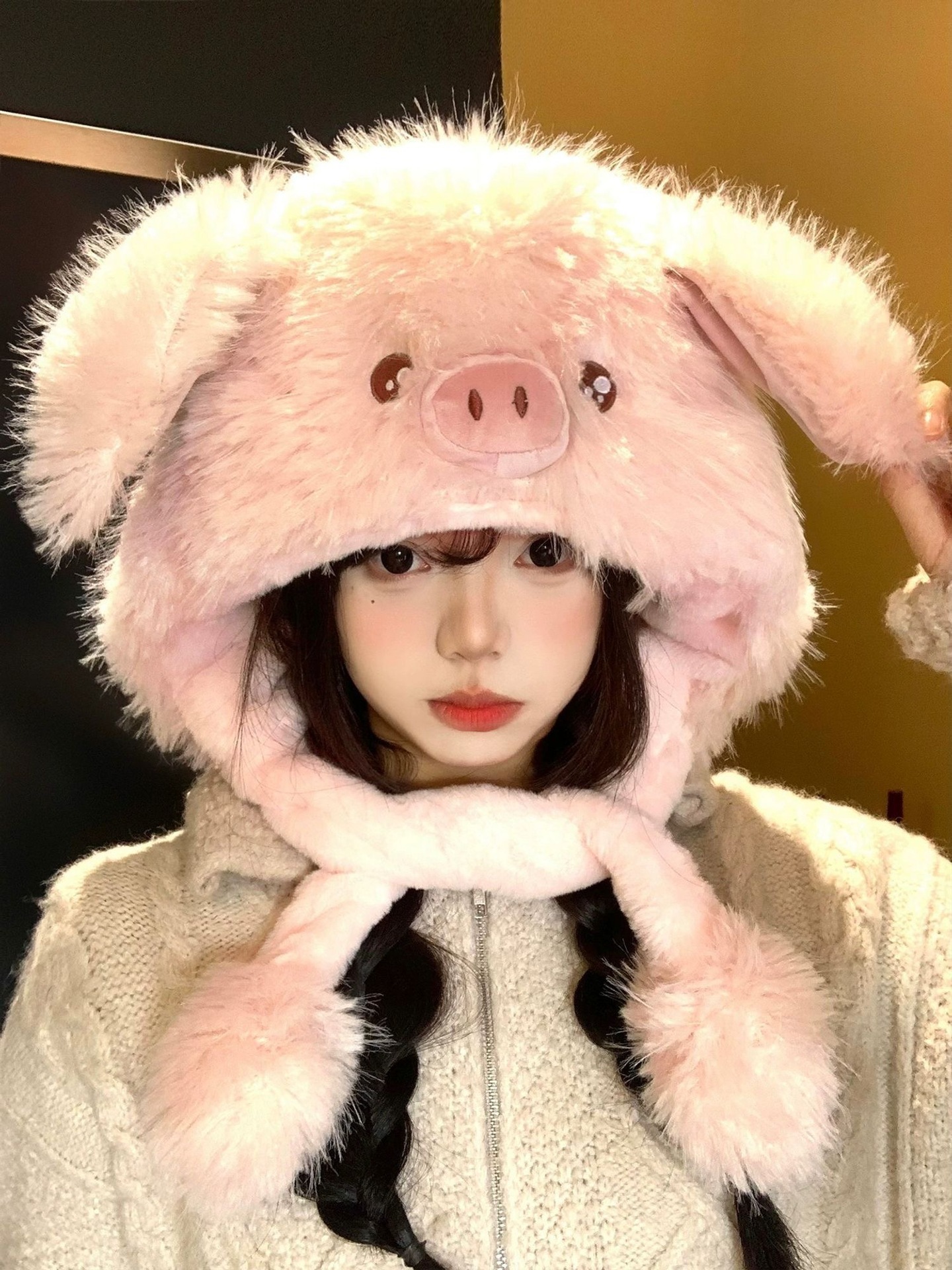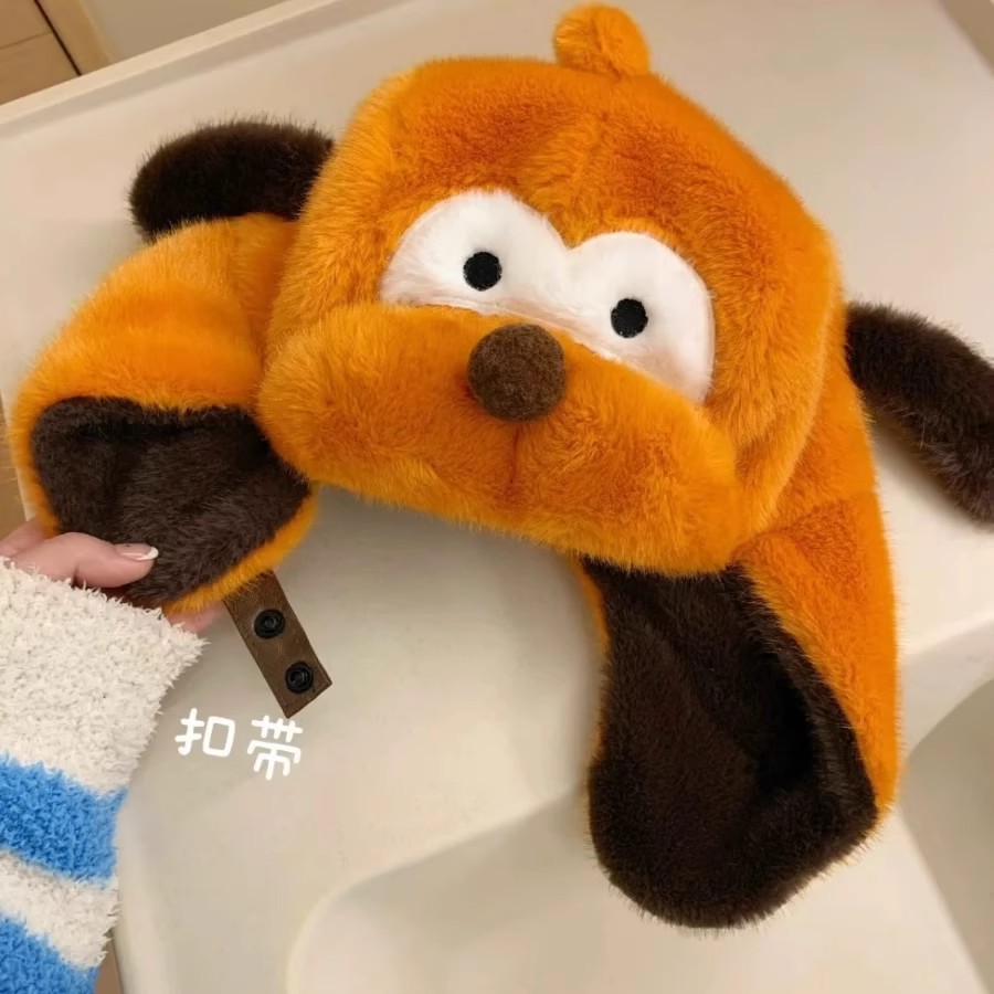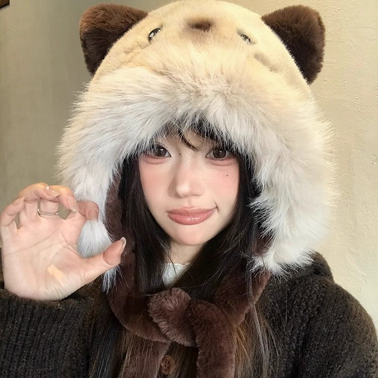 新年の全国トレンド耳移動招き猫帽子冬用保温防寒耳保護ぬいぐるみ帽子赤正月虎頭帽子