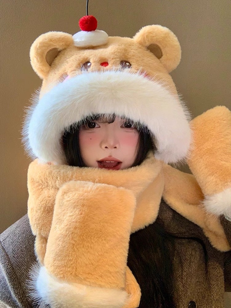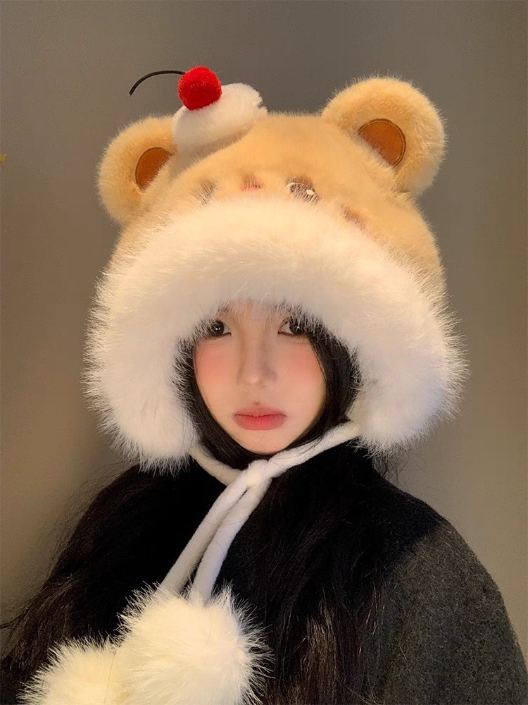 シーズンリボンぬいぐるみ帽子かわいい暖かい耳保護雷峰帽子厚手防寒甘い