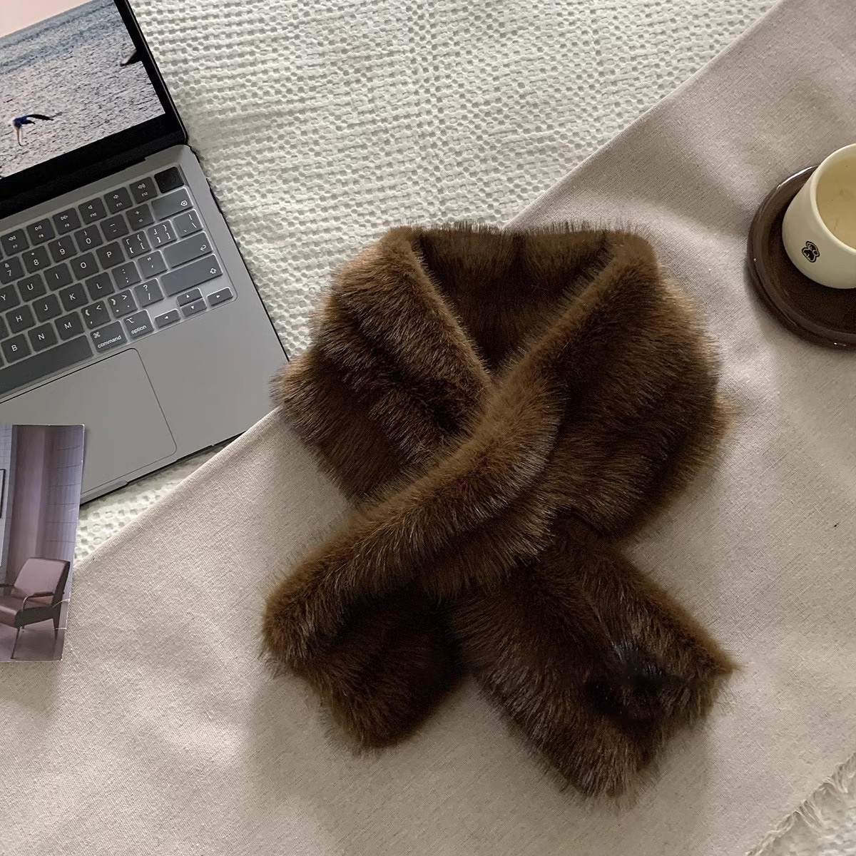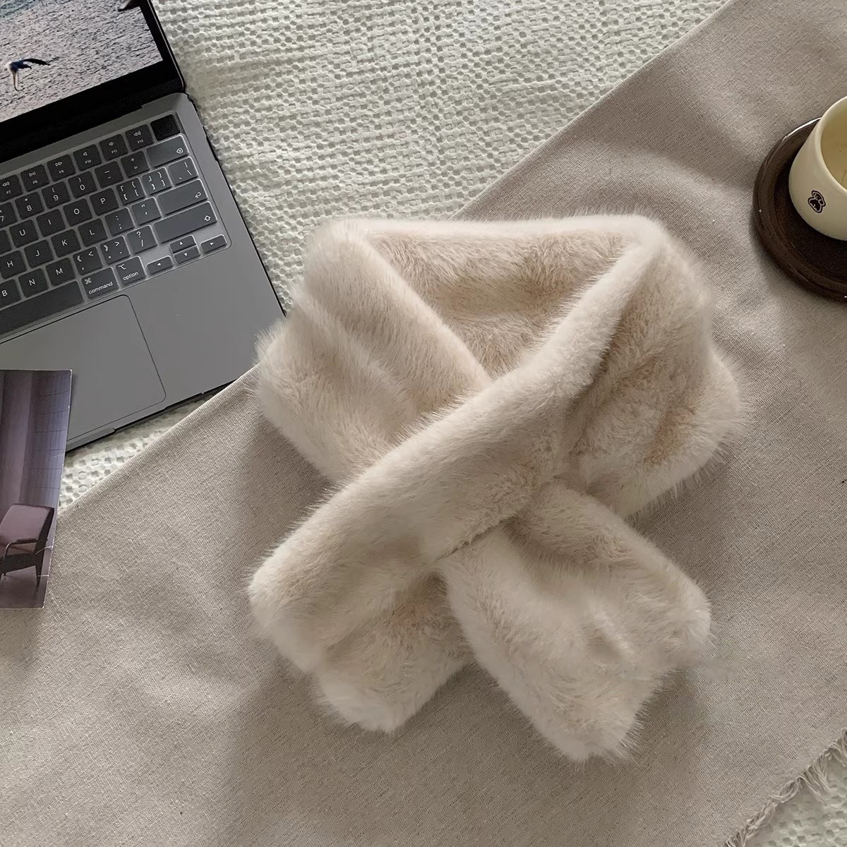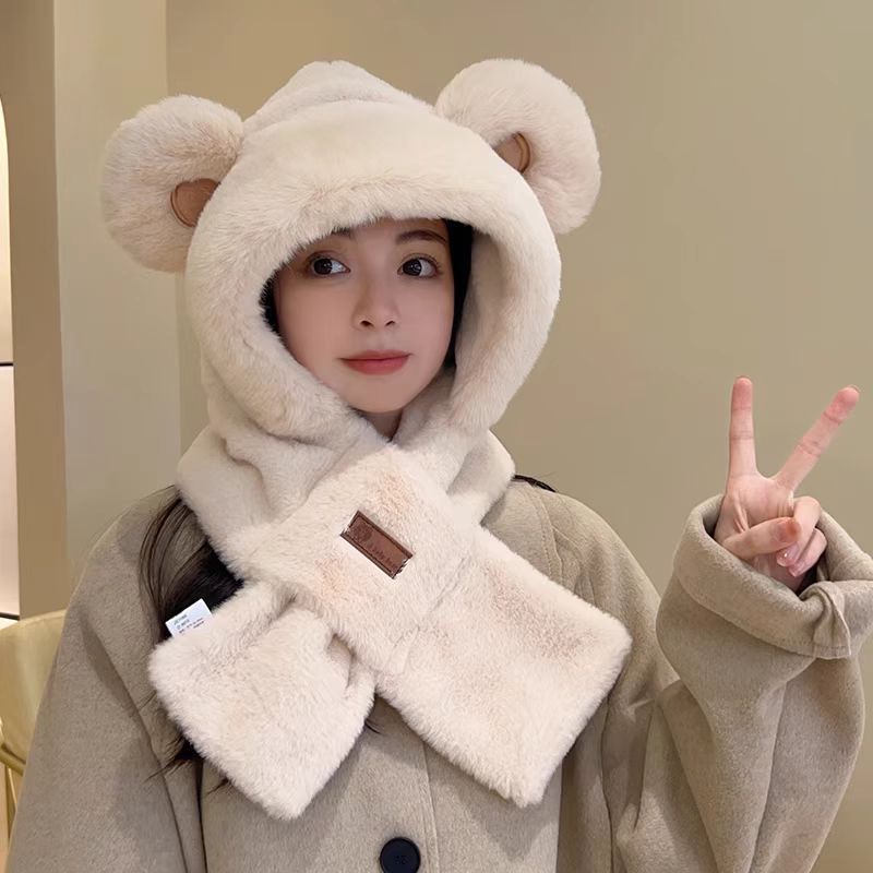 かわいいクマの耳の帽子とスカーフがすべてひとつになった冬用の豪華な厚くて暖かく防寒性のある乗馬用耳保護雷峰帽子