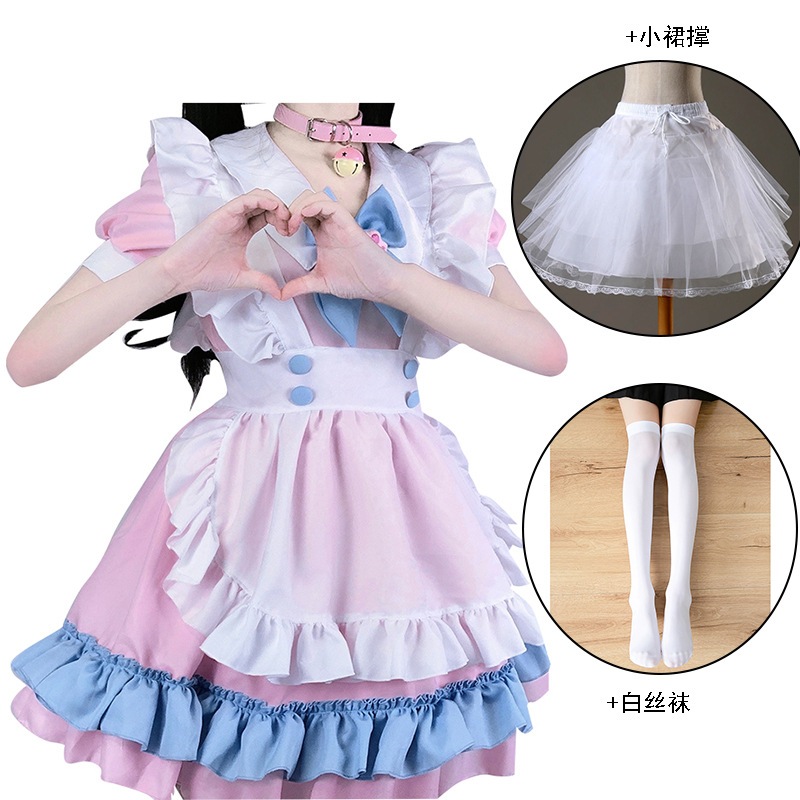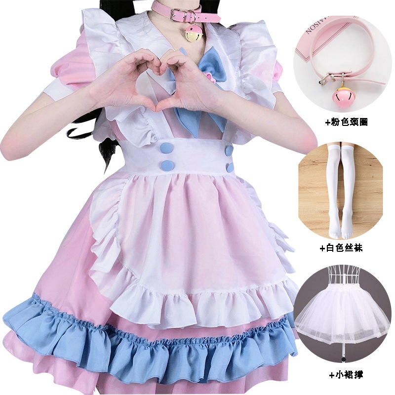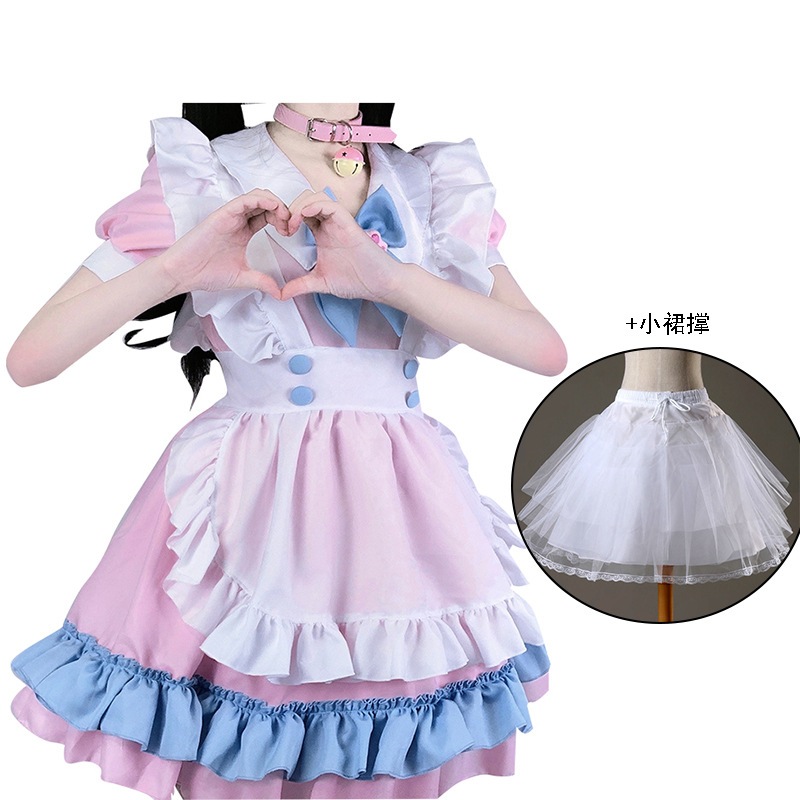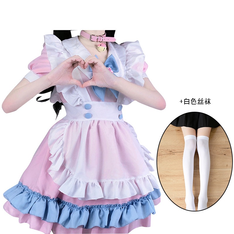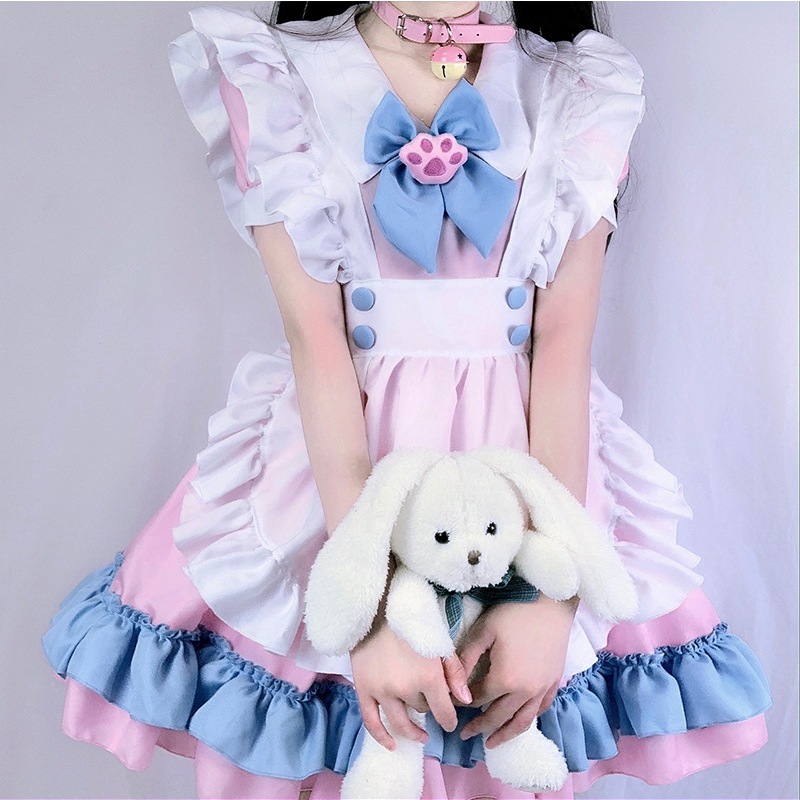 プラスサイズ S-4XL メイド服 超かわいい大きなリボン ロリータドレス レディース ファッション ビッグボス ピンクとブルーのかわいいドレス
