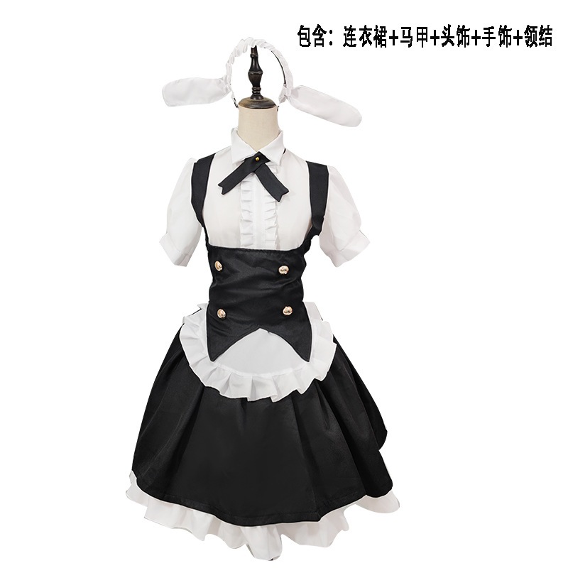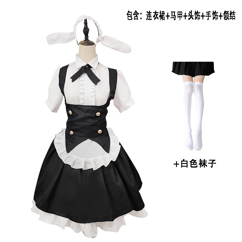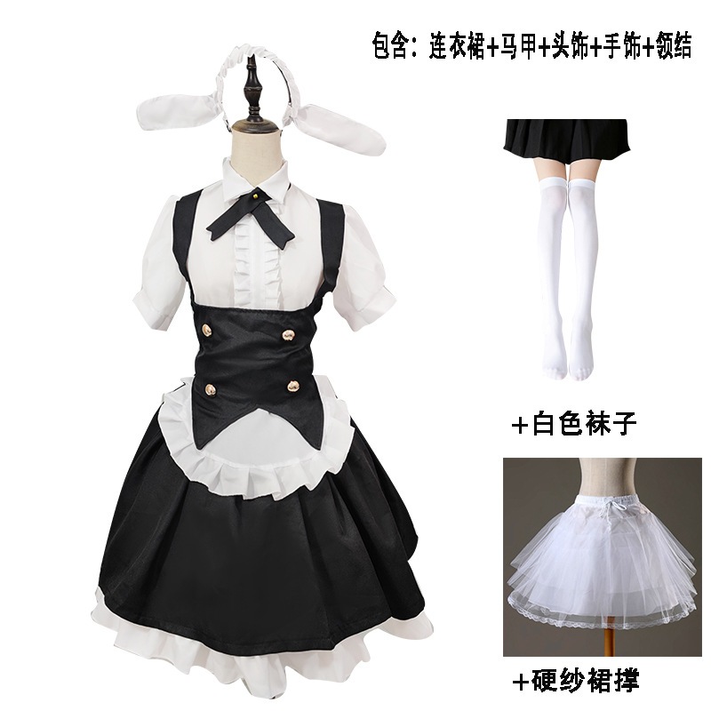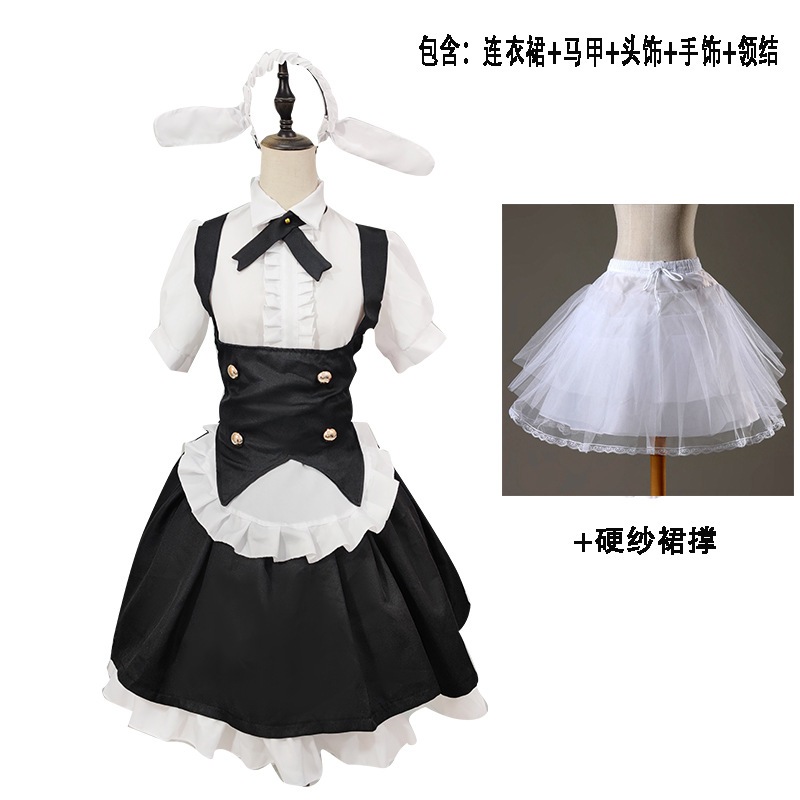 うさぎの耳燕尾服遊び心のあるロリータ風チュチュスカートが付いた和風の白黒メイド服
