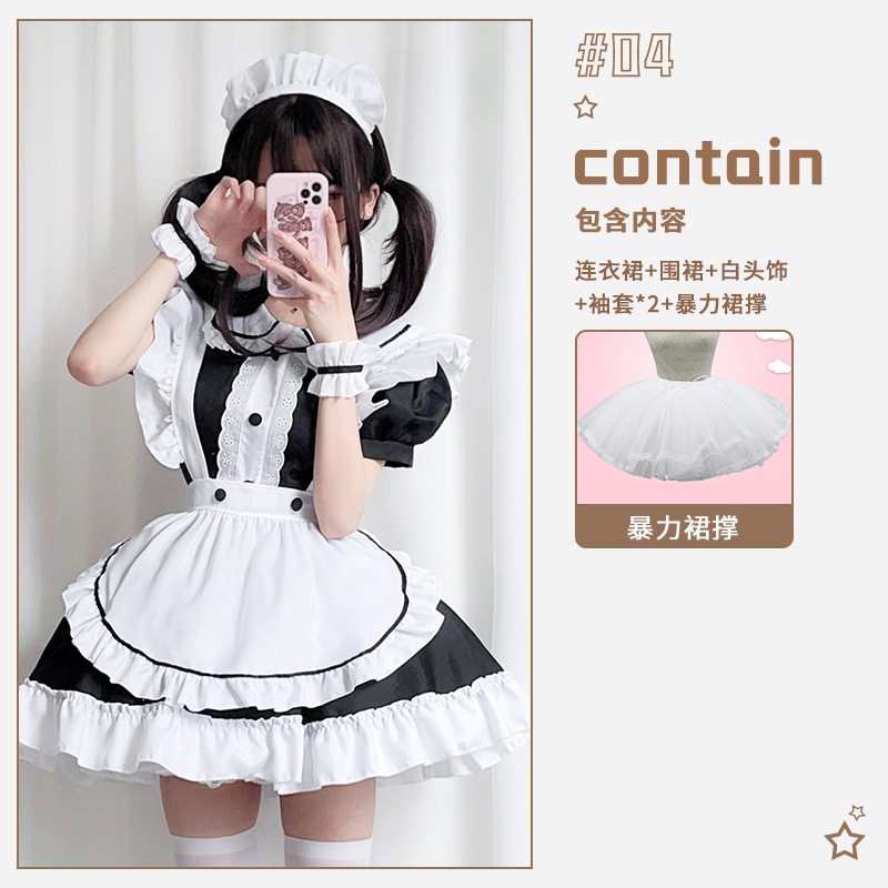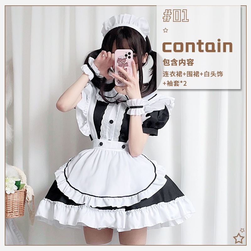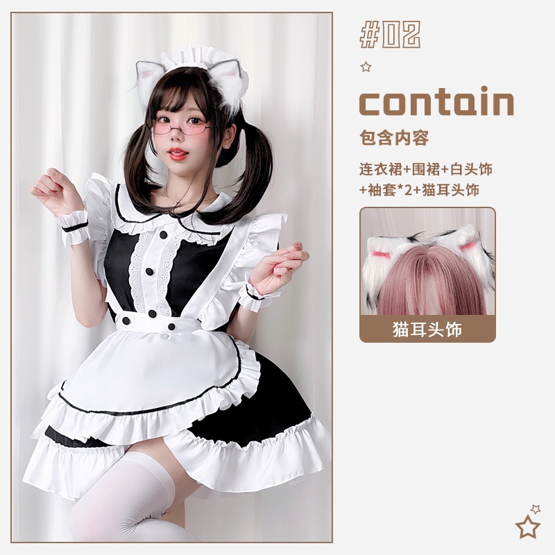 キャットウーマンをテーマにした白黒メイド服日本のコスプレロリータコスプレメイド服カフェメイドプリンセスドレス