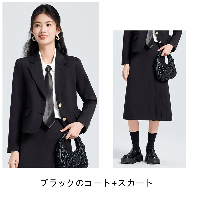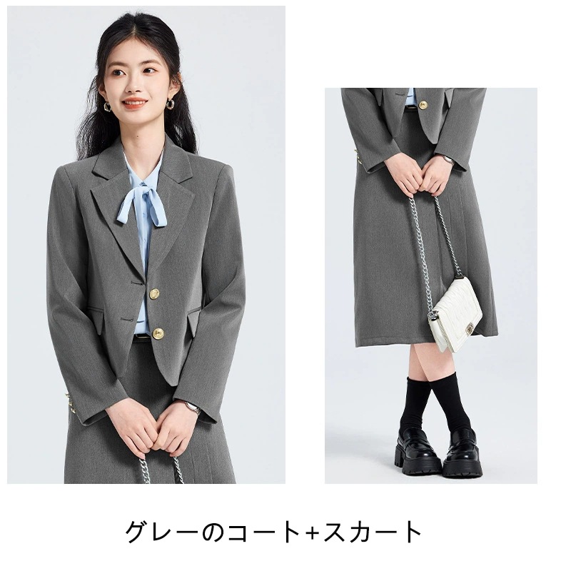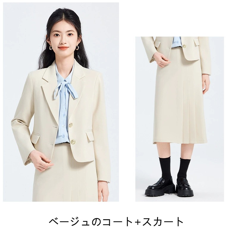 シングルブレストスーツセット スカートスーツ セットアップ ベージュ グレー ブラック 通勤・カジュアル兼用 3色展開 高級感 カジュアル ビジネス