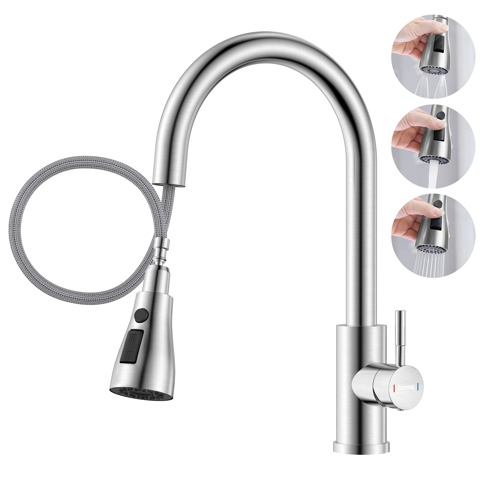 DAYONE キッチン混合水栓 引き出し式スプレーSUS304ステンレスシンク用混合水栓キッチン用3機能360回転シングルハンドル ハイアーク キッチン水栓