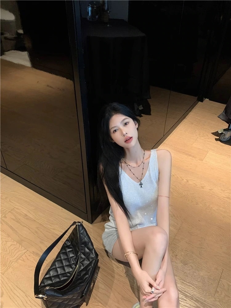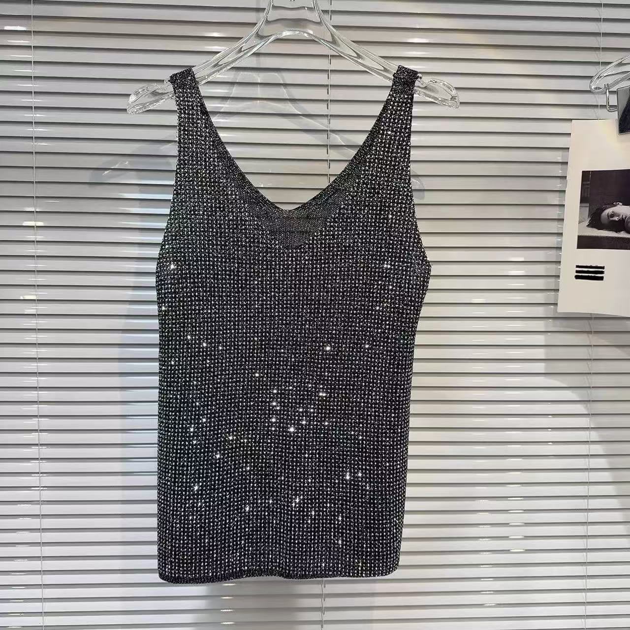 2026年新作ダーク系セクシービッチ 全身ラインストーン付き 気品あるニットタンクトップ
