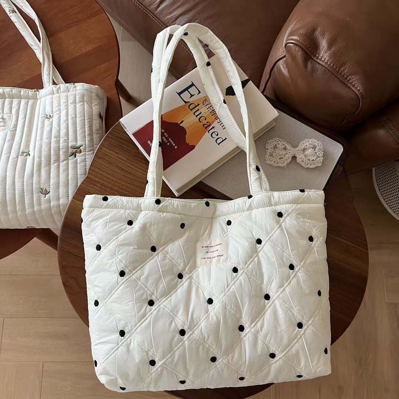 ダウン刺繍キルティングトートバッグ ママバッグ 厚手 衝撃吸収 大容量 レディース ショルダーバッグ