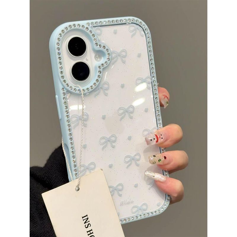 【3日出荷】iPhone 17 16 15 Pro Max 14 Plus 13 12 対応 リボン ラインストーン クリア プレミアム ケースiphoneケース