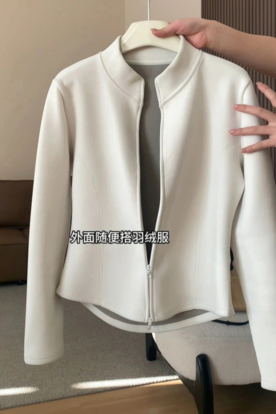 デロン厚手 感 スタンドカラー長袖スウェットジャケット 女性用 秋用防寒 ジッパーインナー