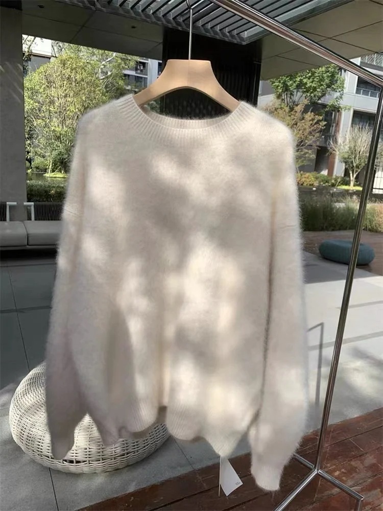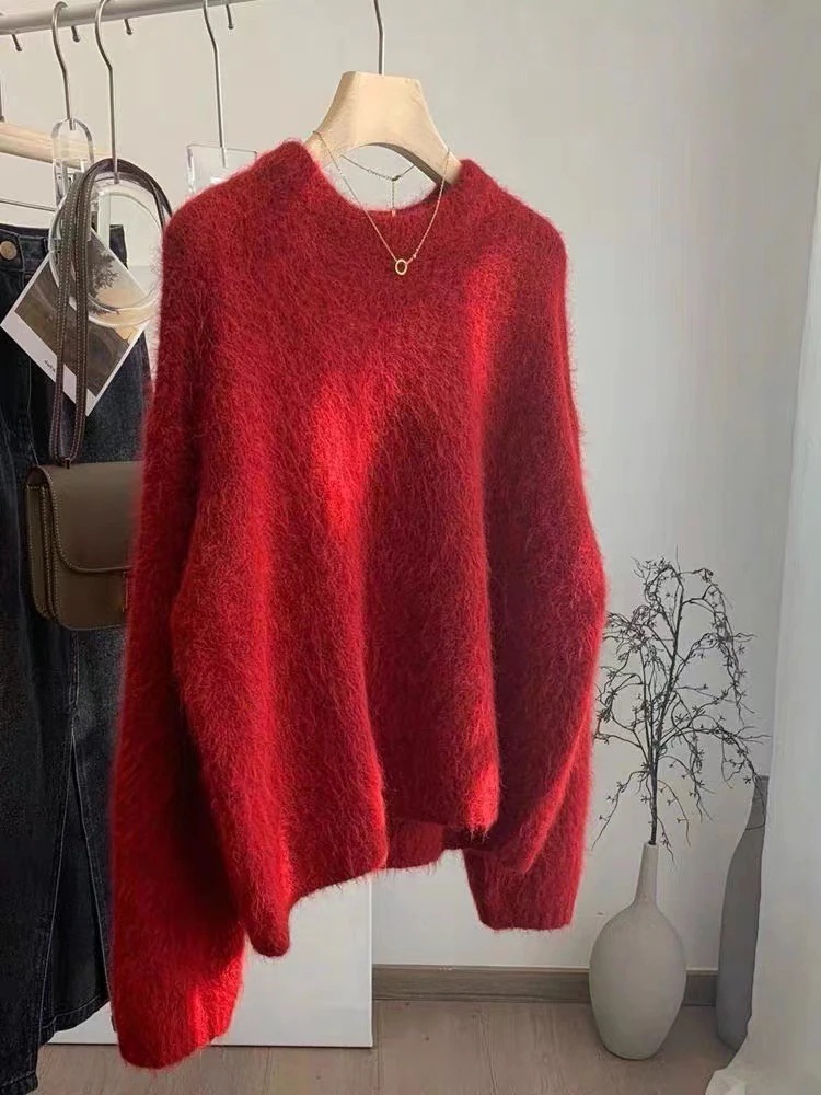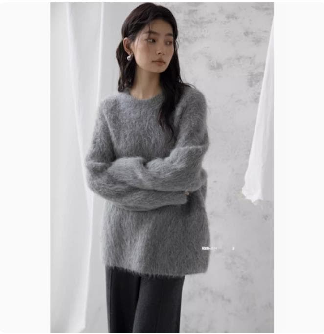 モヘア 厚手セーター 女性用 秋冬ゆったり 厚手冬ニット
