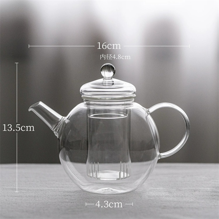 INSスタイル 2026年新作 高硼珪耐熱ガラスティーポット 450ml 丸型デザインで取っ手付き 茶こし一体型 煮茶と泡茶両方に対応 耐熱性に優れた安全素材 家庭やオフィスで使用可能 お手入れ簡単