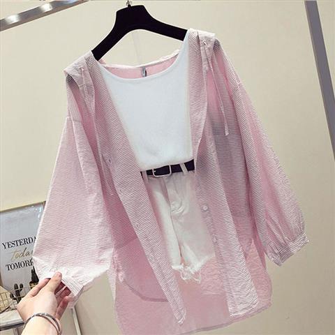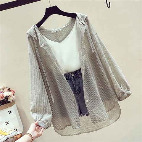2枚購入3OO円OFF UVカット夏軽薄 uvカットパーカー ストライプ 日焼け防止 カーディガン紫外線対策 接触冷感 トップス体型カバー 薄手Tシャツ レディース シフォンブラウス