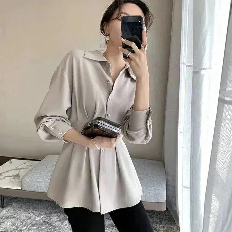 シャツ 夏 韓国ファッション トップス 長袖ブラウス 着痩せ シャツ ブラウス ワイシャツ 無地 トップスブラウス シャツ ブラウス