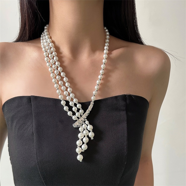 早い者勝ち 2026新作 レディース ニットチェーン アシンメトリー マルチレイヤー フェイクパール デザイン 軽やかでエレガント オフィスからリラックスシーンまで対応