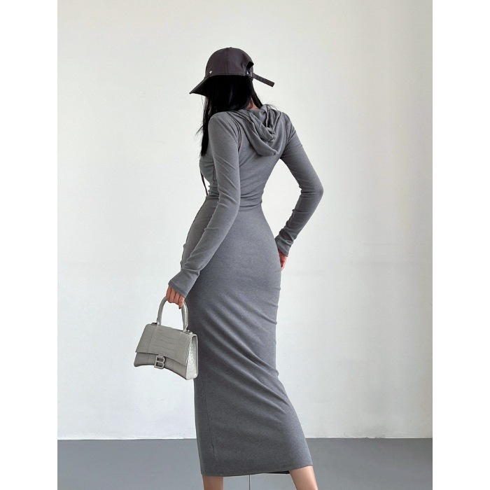 2026 ピュアでセクシーな秋冬のスウェット女性らしいヒップを包み込む膝丈フード付き長袖ボディコンロングスカート