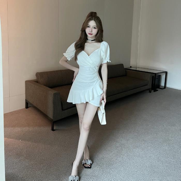 2026 セクシーなVネックのローカット女性用夏のエレガントなフリル付きでお腹をカバーしスリムに見せるヒップを包み込むショートスカート