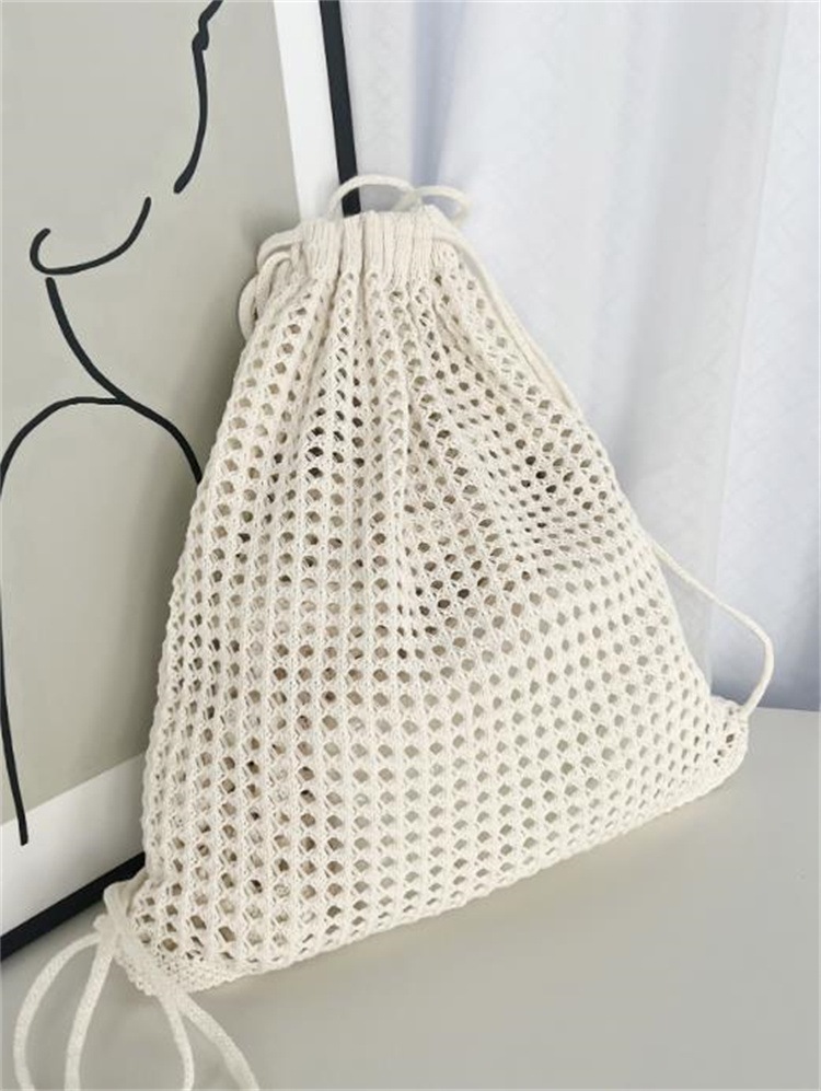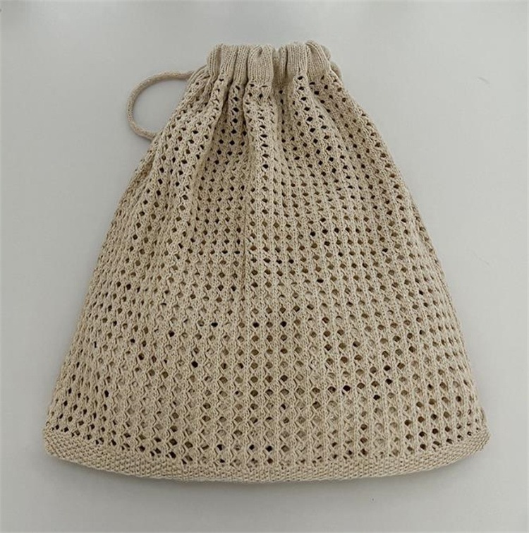 INSスタイル 4色展開 ins風 シンプル編み網兜 ドローコードリュック ニットトートバッグ 小清新