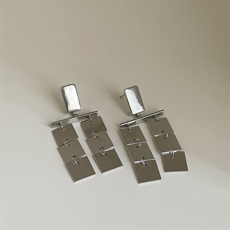 早い者勝ち メタリックな輝き スクエアカットのスタイリッシュピアス 繊細なフリンジの動き 銀針で安心