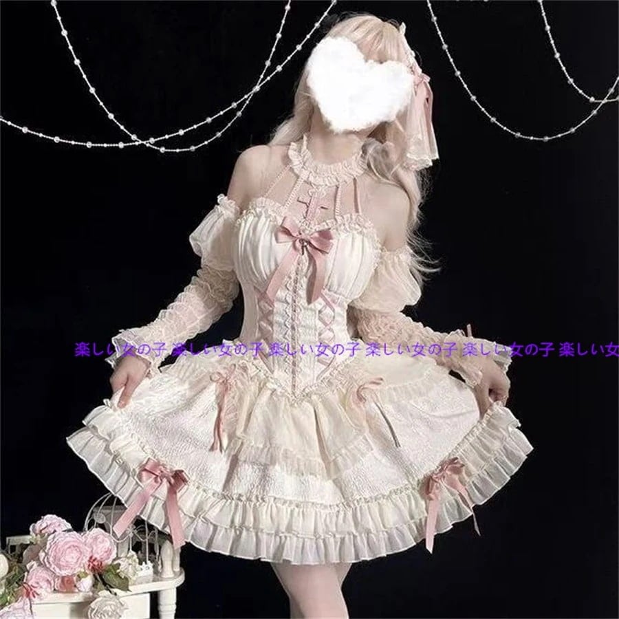 Q10人気新品!のかわいいロリータワンピース二次元コスプレドレスかわいいロリーワンピース+リボンのモップスーツ学園祭文化祭