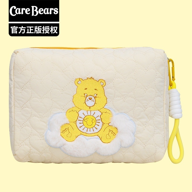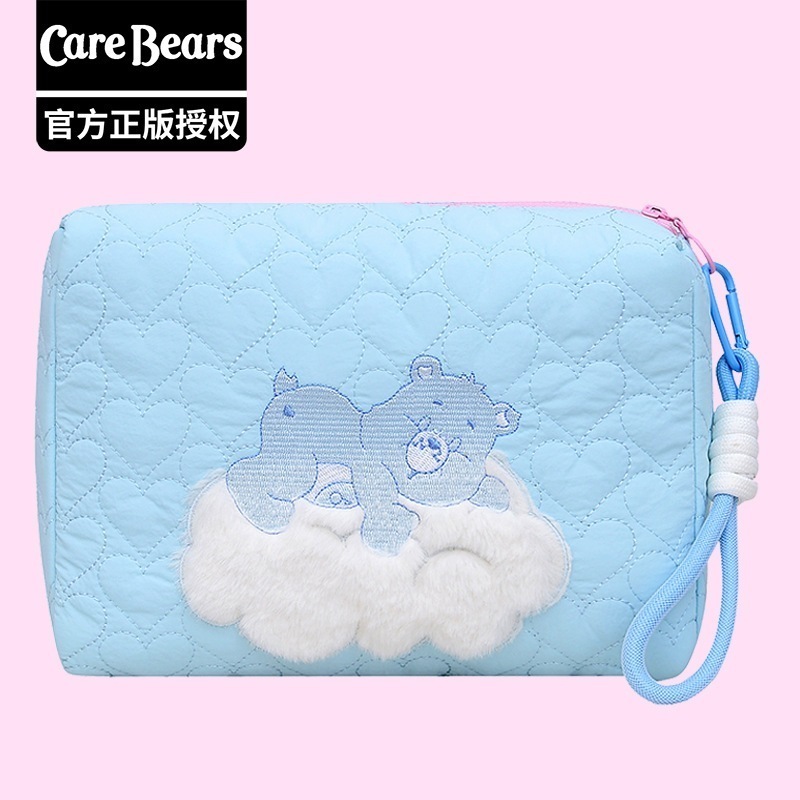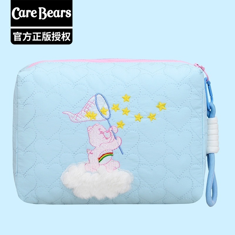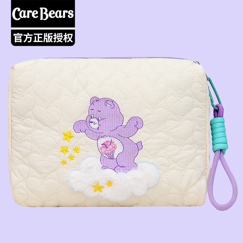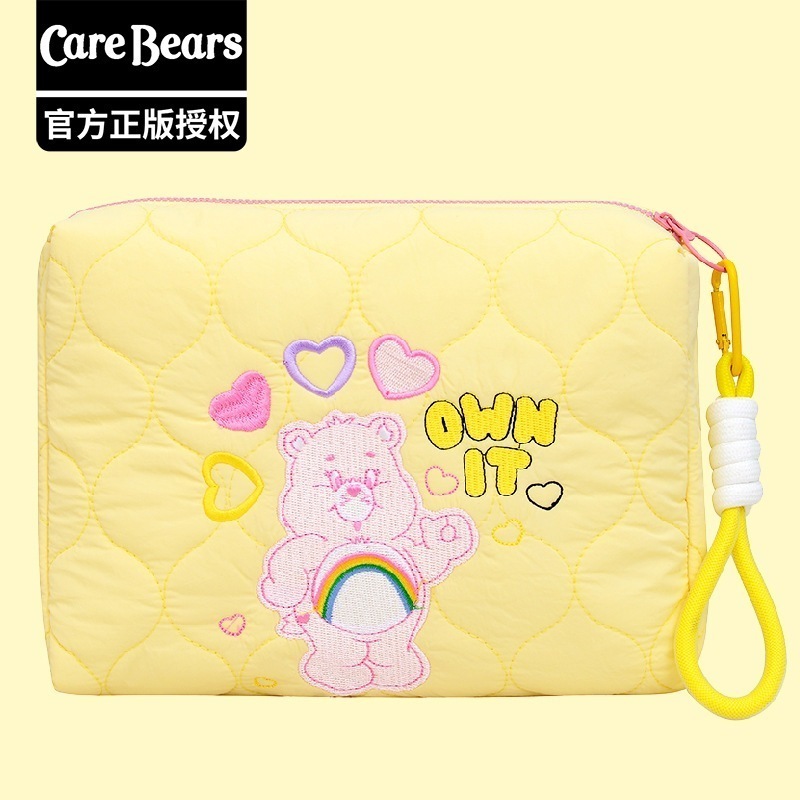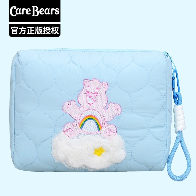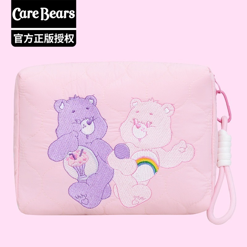 CareBears 虹色カーベア キルティング刺繍 3WAYポーチ 収納バッグ メイクポーチ ペンケース