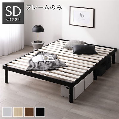 天然木 すのこ ベッド セミダブル ベッドフレームのみ ブラック ヘッドレス 高さ調整