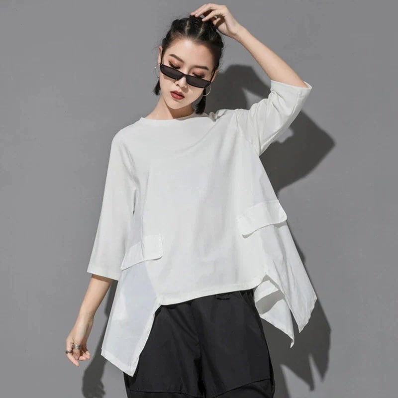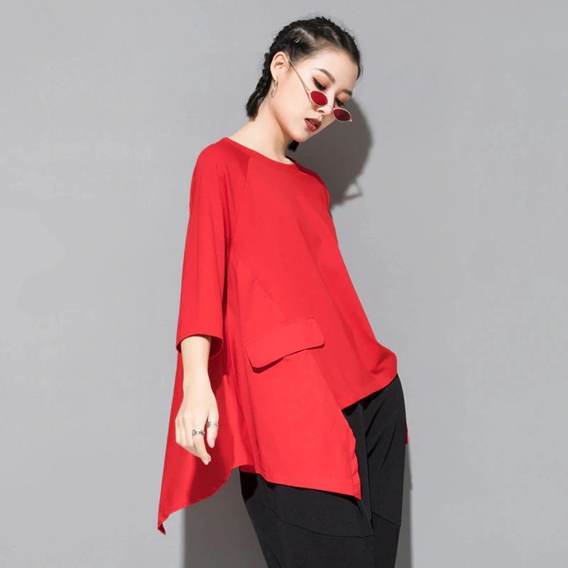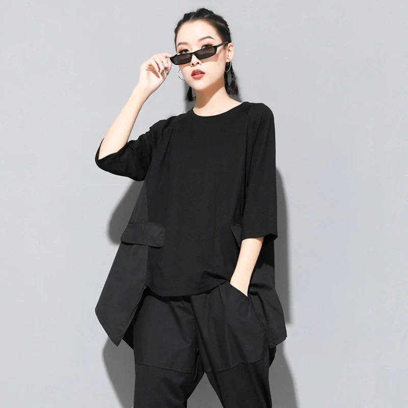 韓国体型カバーチュニック夏の新型半袖コウモリシャツtシャツゆるいa版痩せている女性大きいサイズ ロンT
