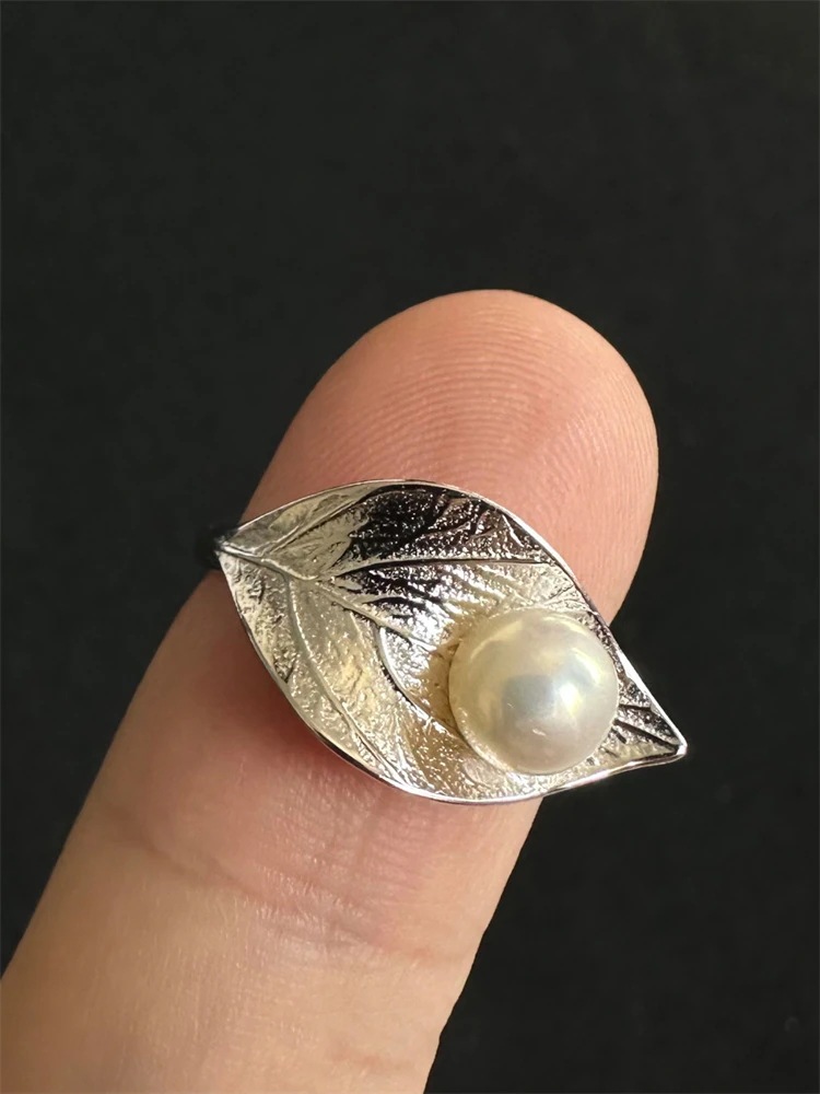 早い者勝ち 2026最新 純銀リーフ真珠リング オープンデザイン 上品な人差し指装着 軽やかで耐久性のある日常使い