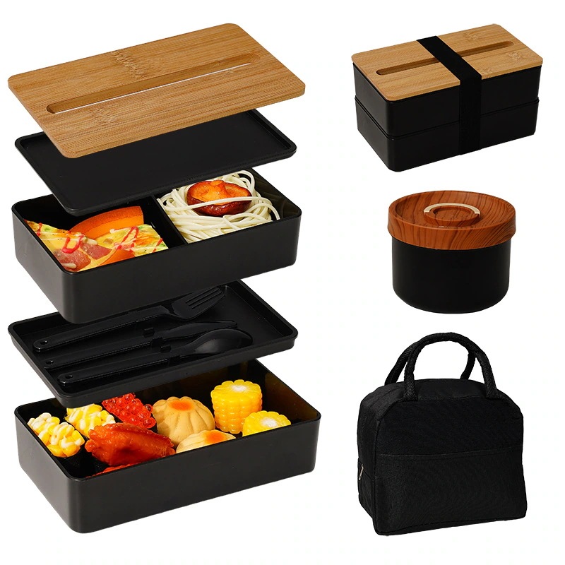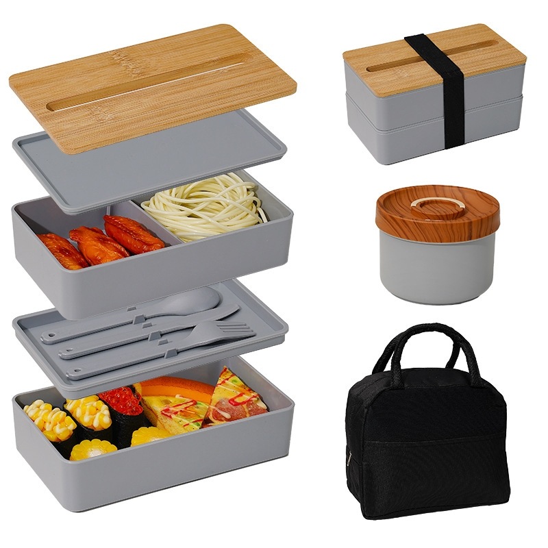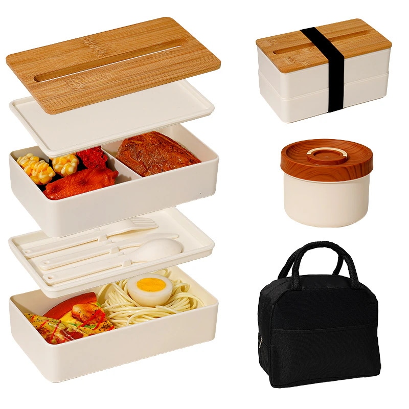 【3日出荷】3点セット 二重 竹のふた 弁当 サラリーマン 大容量 弁当箱食器+カップ+保温袋付き 学生が料理を持っていく ランチボックス