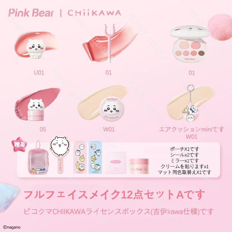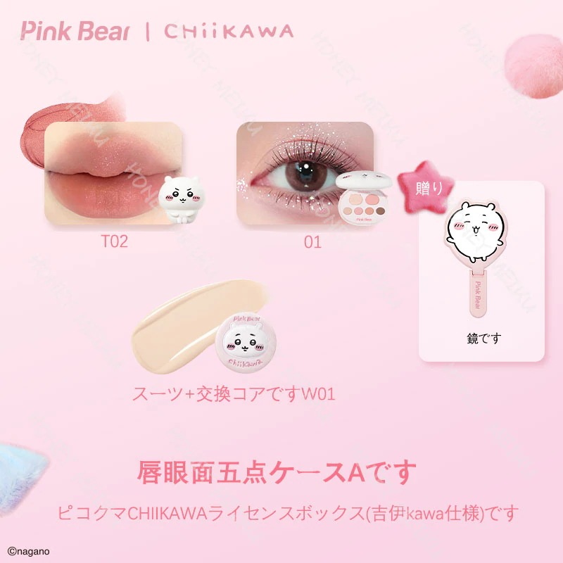 PINK BEAR【公式正規品】コスメセット CHIIKAWA限定 人気ケース セット リップ/アイシャドウパレット/クリームチーク/口红/化粧ケース/景品一式を差し上げ 豪華プレゼント ファッション バレンタインデ