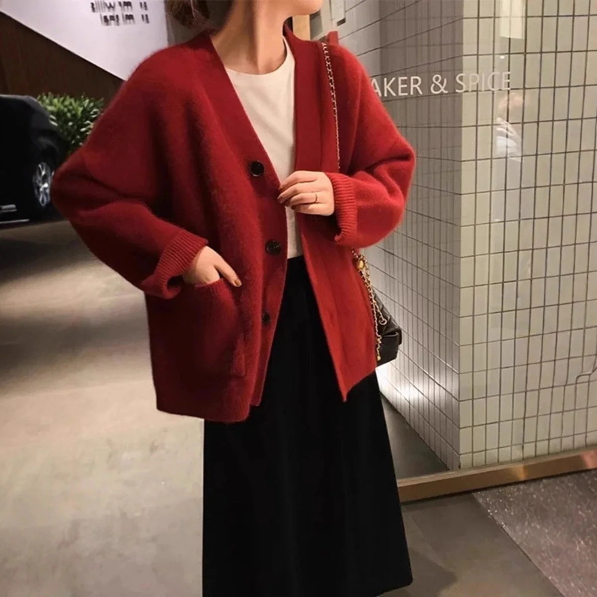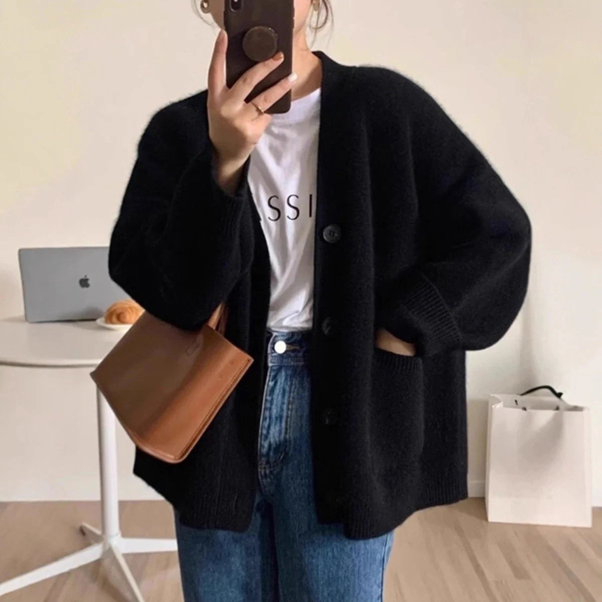 2026 春 カーディガン 新作 デザイン感 ブラック vネック ニットカーディガン 厚手 ゆったり カジュアル セーター アウター トップス レディースファッション
