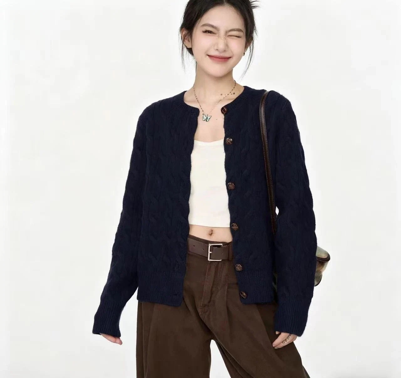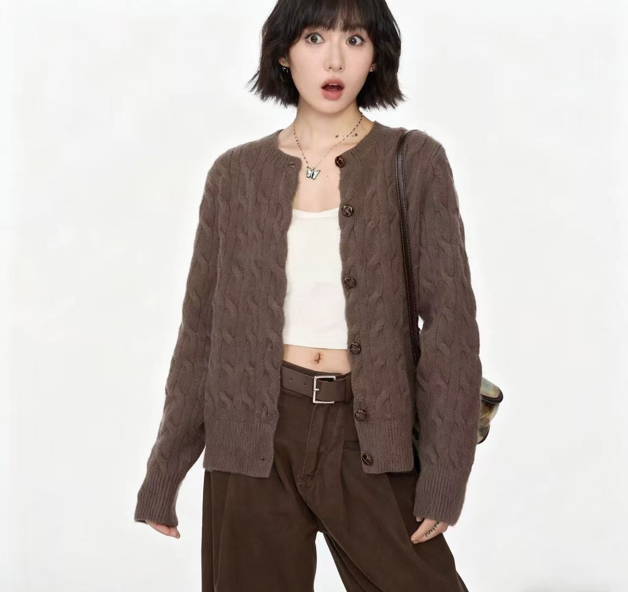 2026 春 カーディガン 新作 韓国ファッション カジュアル セーター アウター 無地 ニット トップス レディースファッション