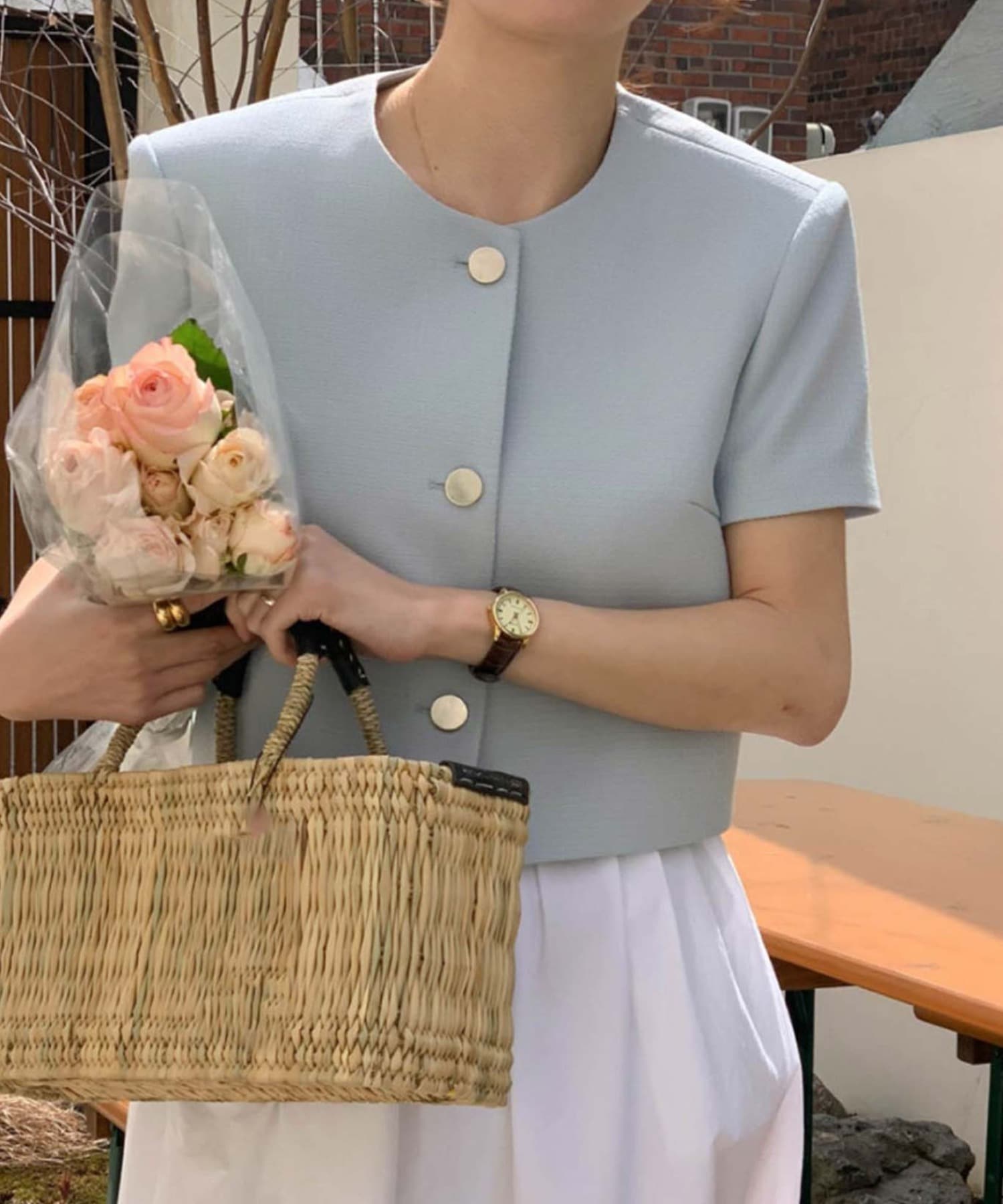 ラウンドネックハーフスリーブジャケット