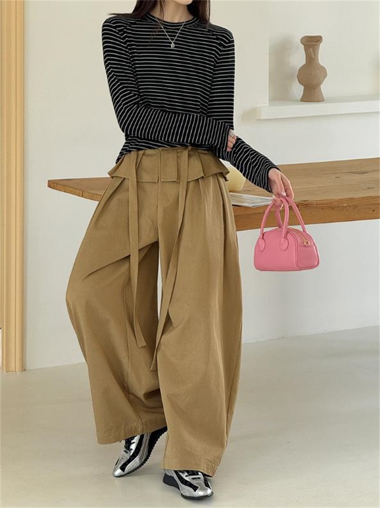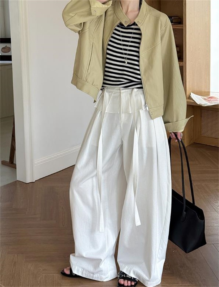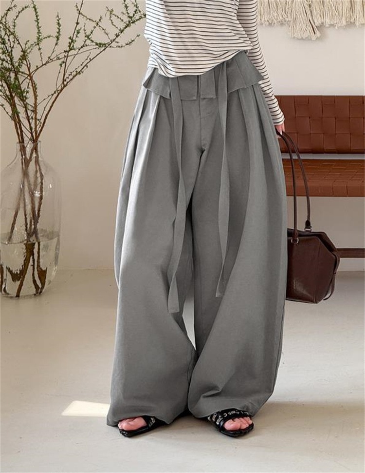 Twinkling starINSスタイル レディースハイウエスト フェイクツーピースレース切り替えワイドスーツパンツ 2026春季新作 ミニマルカジュアルロングパンツ 4カラー選択可 ゆったりシルエットでスッキリと見せ