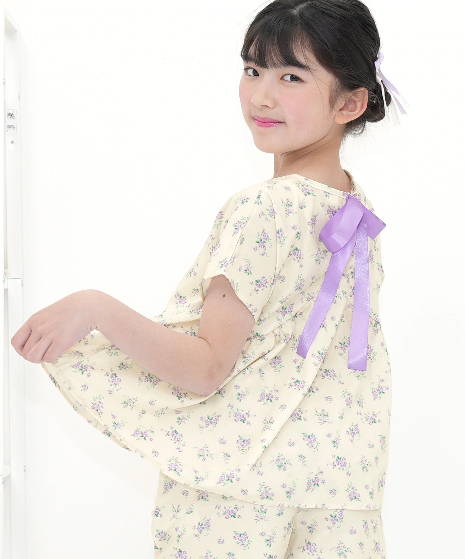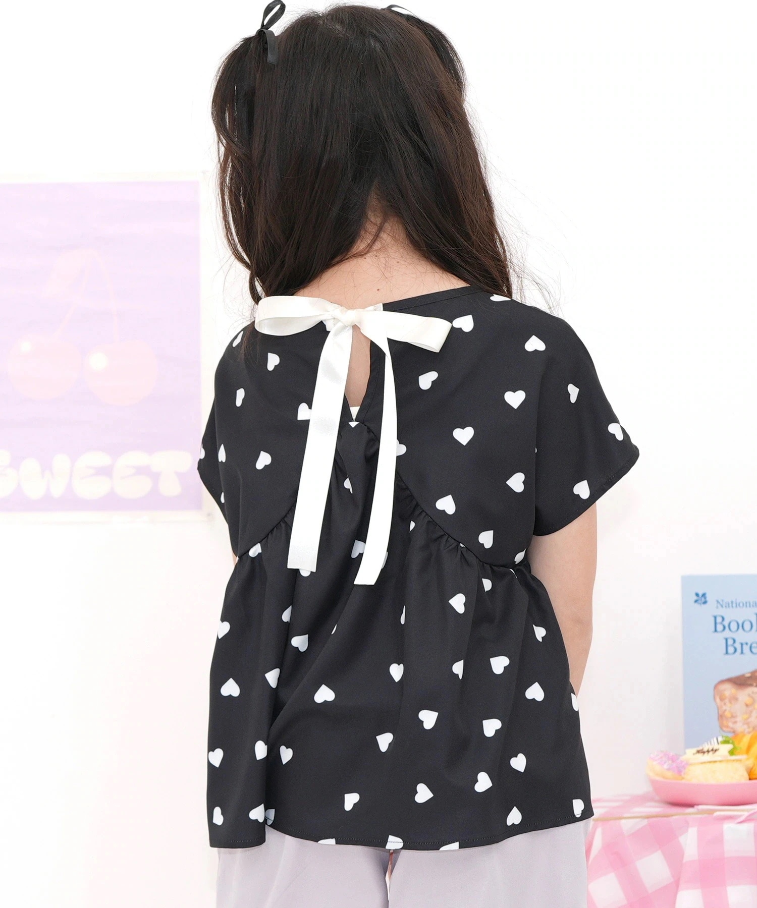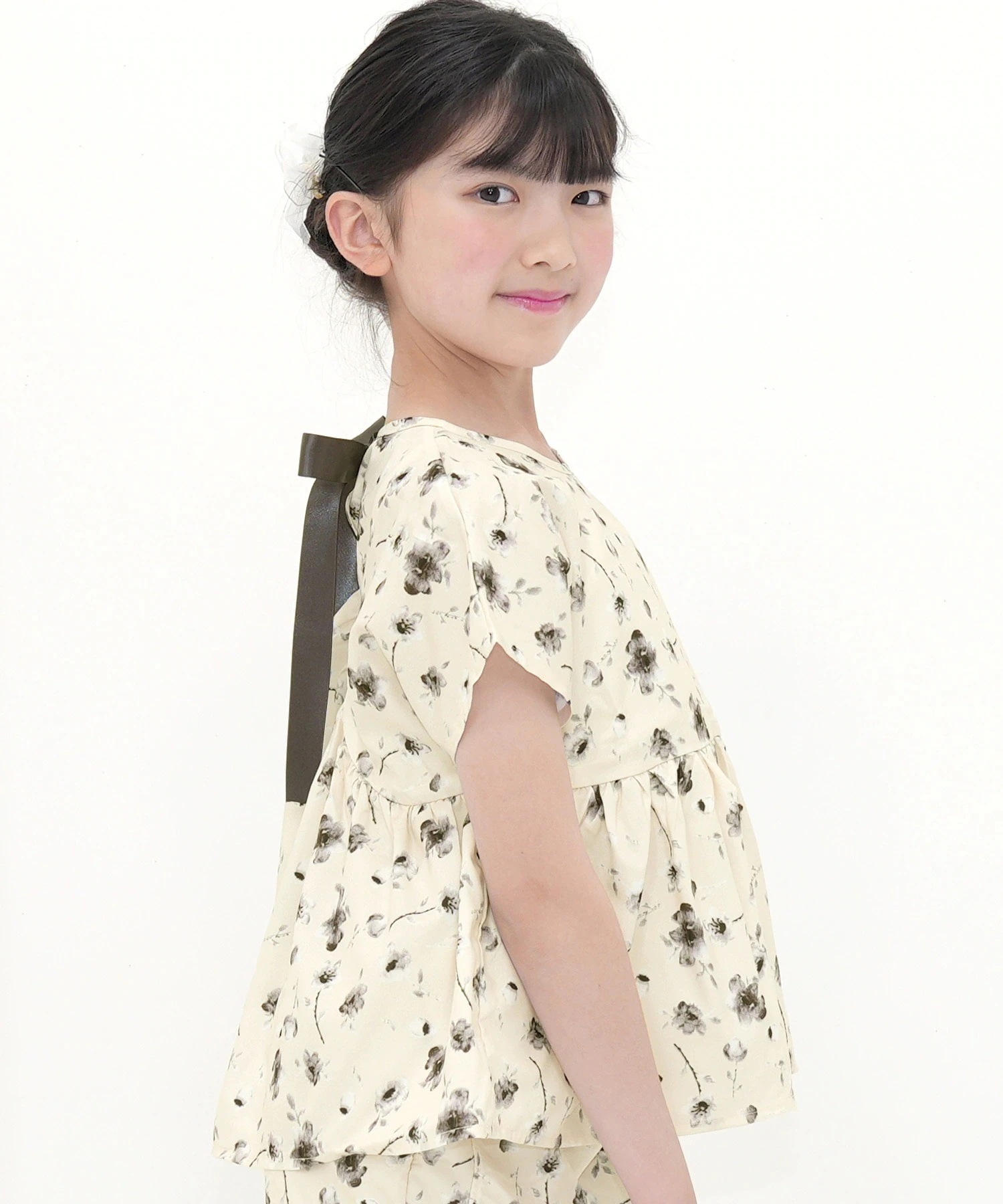 半袖リボントップス 子供服 キッズ 女の子 リボン 切替え 無地 春 夏 秋