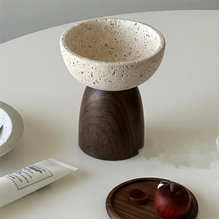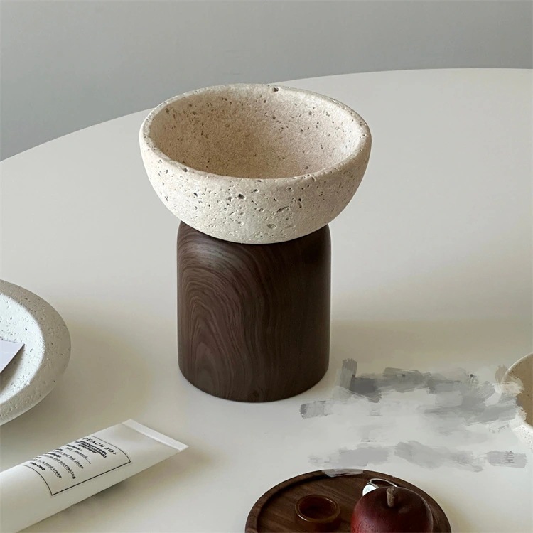 激安セール レトロスタイル陶器製アロマボウル 直径 12cm 高さ 14.5cm トラバーチン風収納器 香水小物収納トレイ 卓上装飾兼アロマ容器オブジェ
