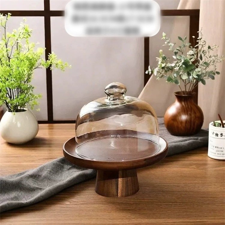 早い者勝ちガラスカバー付きレトロ相思木ケーキトレイ 2026新作 家庭用お菓子皿 デザートスタンド 木製ハイヒール多用途フルーツ皿 レトロデザインが格調があり 木製素材が耐用しやすく 展示と実用を両立
