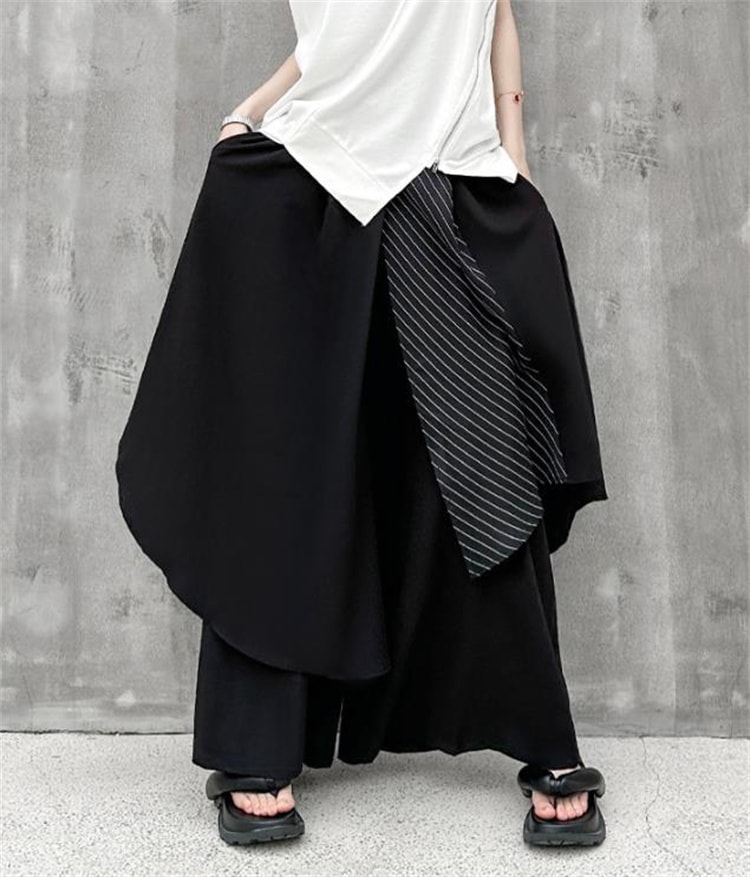 通勤する 縦縞切り替えハイウエストゆったりワイドパンツ 2026春夏新作 レディース 気品あるカジュアルロングパンツ 着心地が良く スッキリとした印象を与える