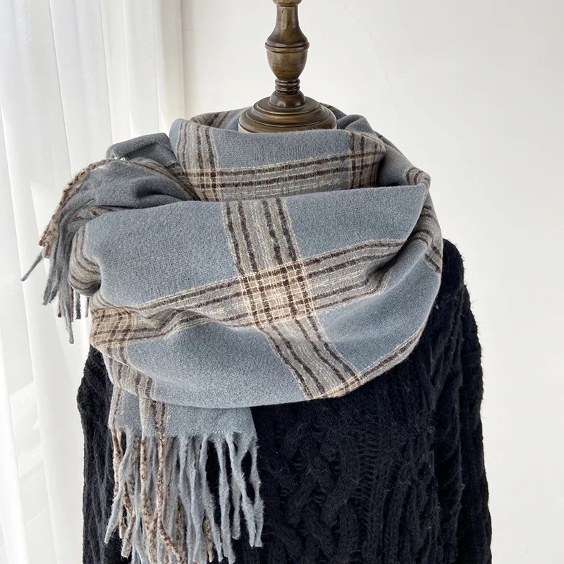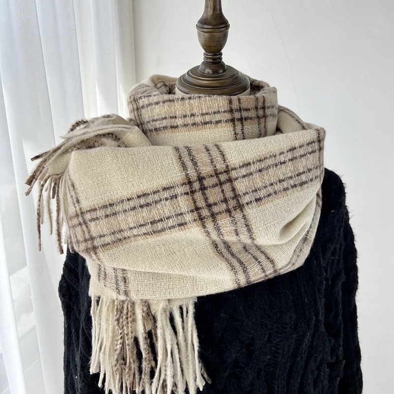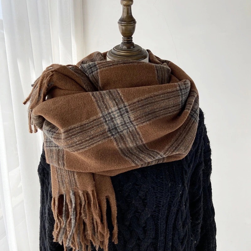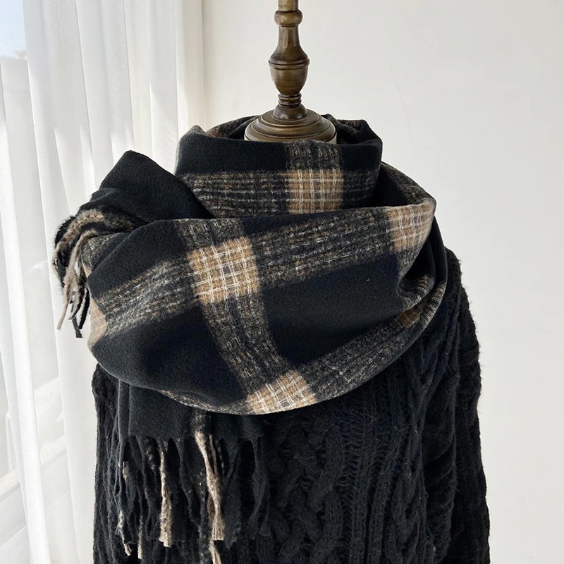 チェック柄スカーフ 女性 風 新作 秋冬用 厚手保温 フリンジ付きショール ロング丈 学生向け 合わせやすい カップル用マフラー
