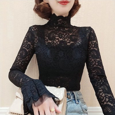 レースインナー 裏起毛 婦人 新作ネットレースフリル タンクトップ タイトフィット セクシーで万能なトップス