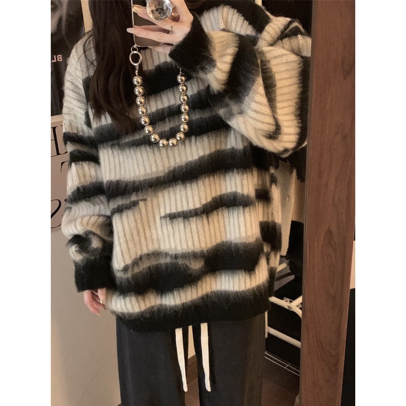 風ゆったり 柔らかくふわふわ 起毛 プルオーバー厚手セーター 女性用 2025年秋冬 長袖ニットトップスアウター