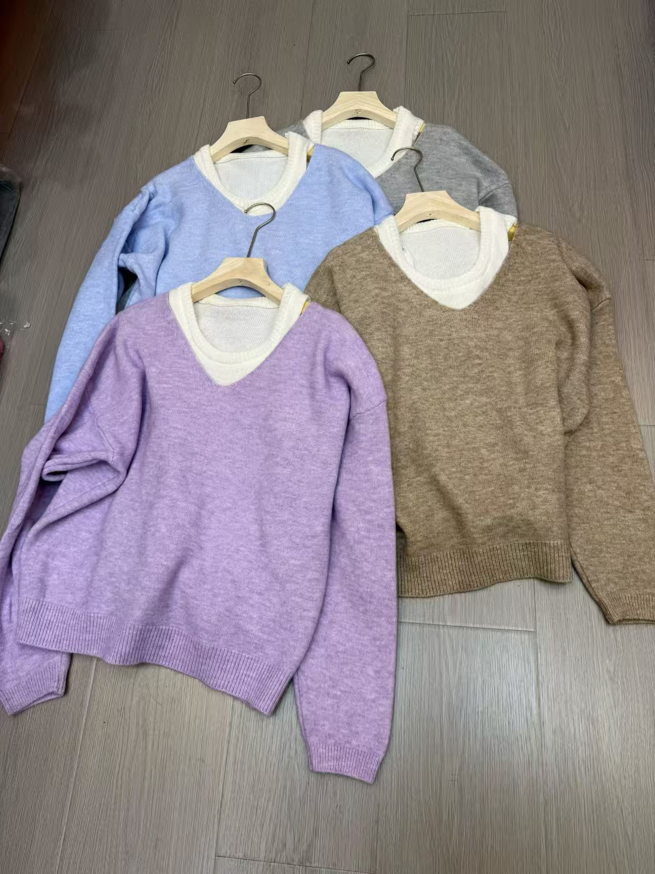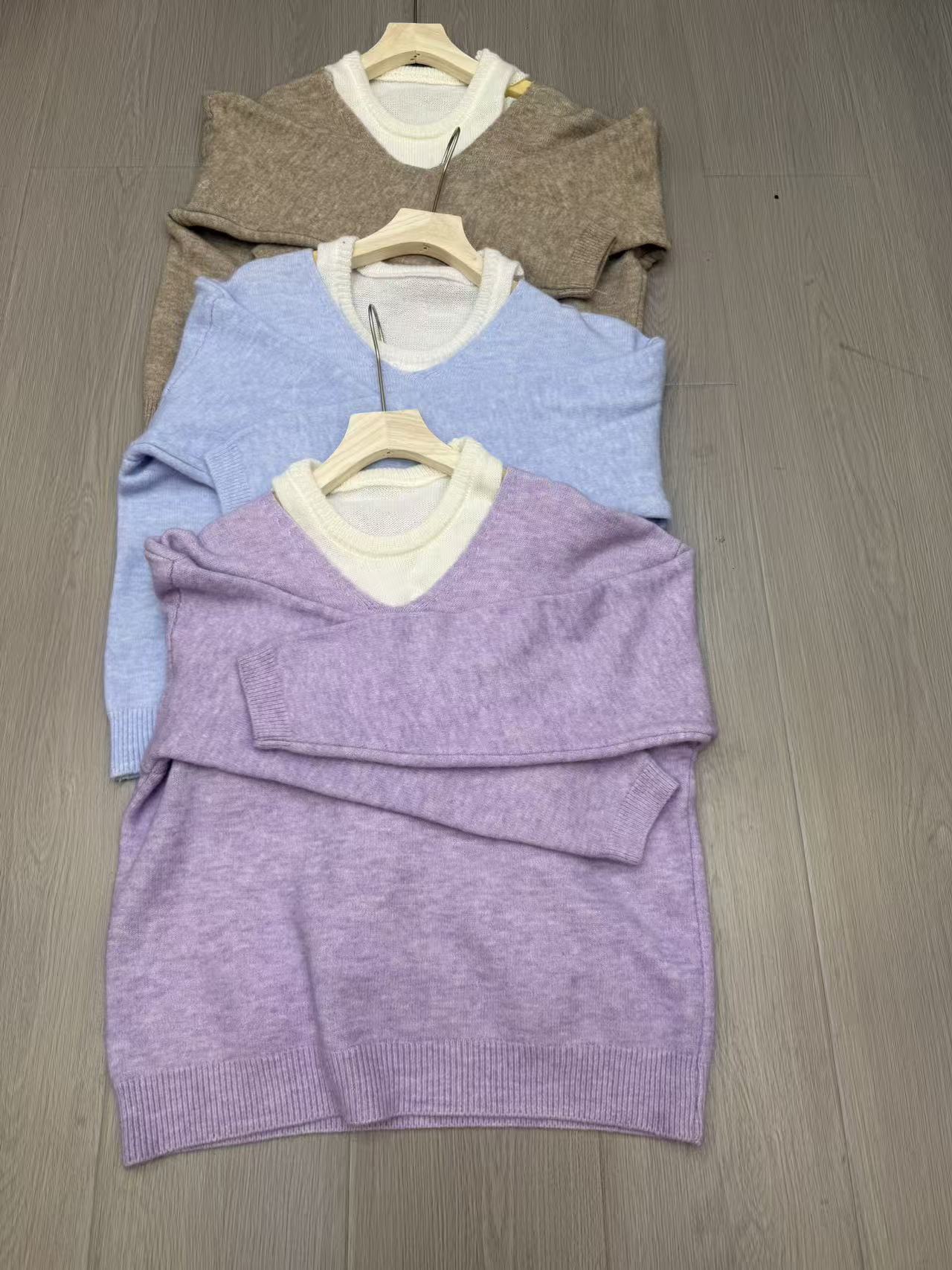 甘美なVネック プルオーバー セーター ベスト ツーピース レディース 2025年秋冬 風 重ね着 ニットセット トップス