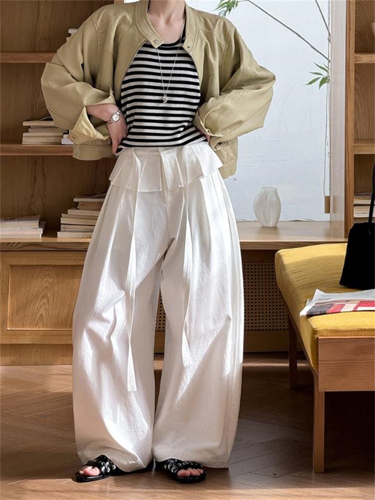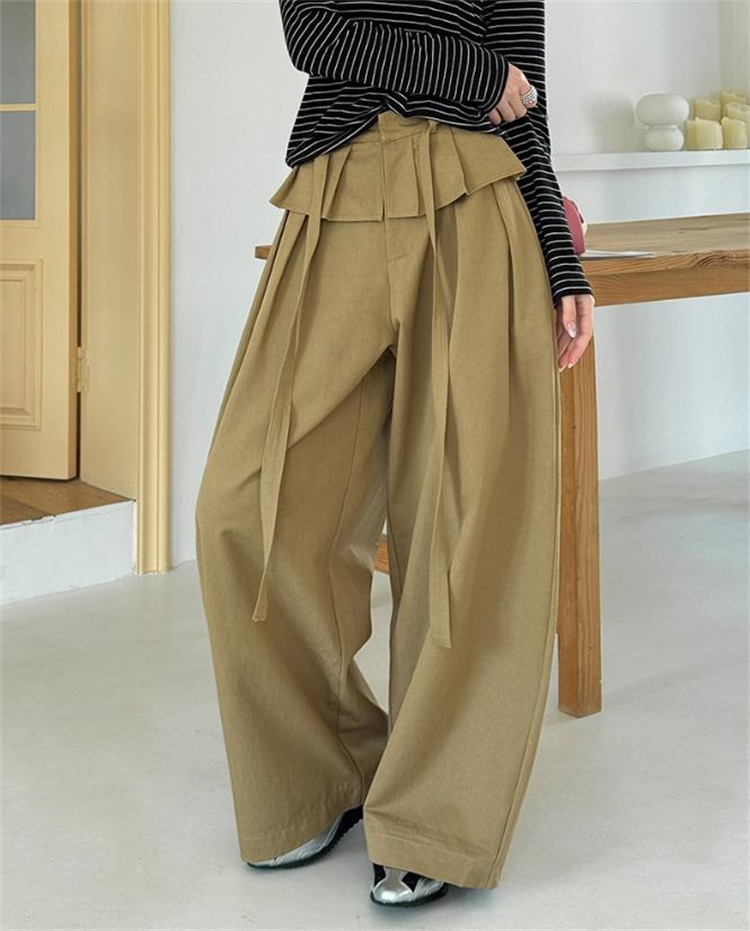 通勤する2026春季ミニマルスタイル レディースフェイクツーピースレース切り替えハイウエストワイドスーツパンツ カジュアルロングパンツ 4色展開 レースディテールがアクセント 高腰でプロポーション調和