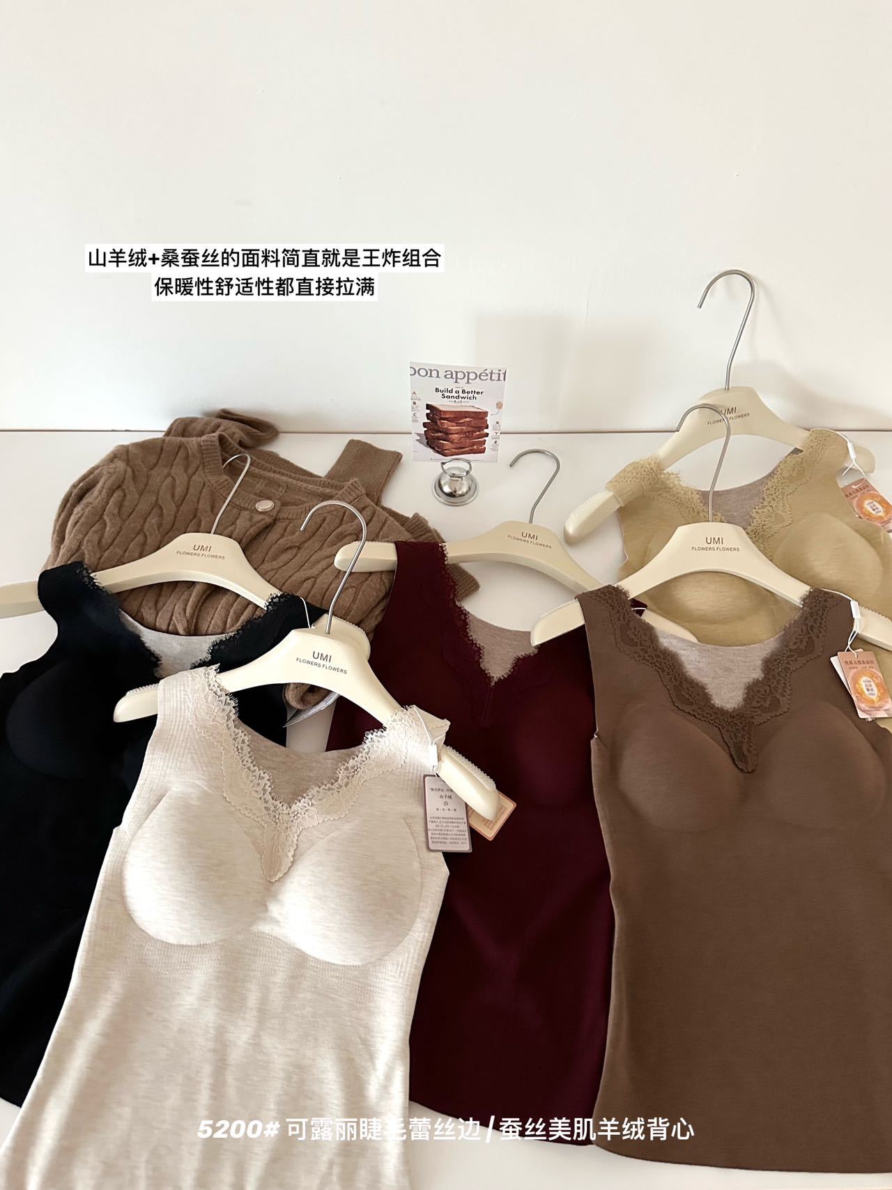 レース縁取り美肌 羊毛ベスト 冬季 発熱起毛 厚手パッド付き保温ベスト