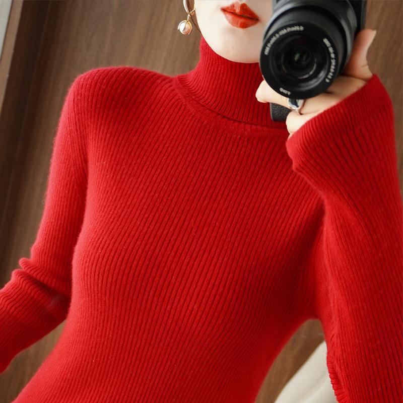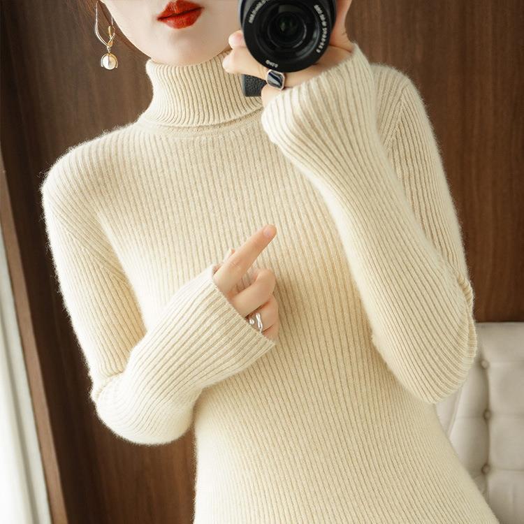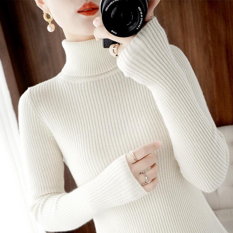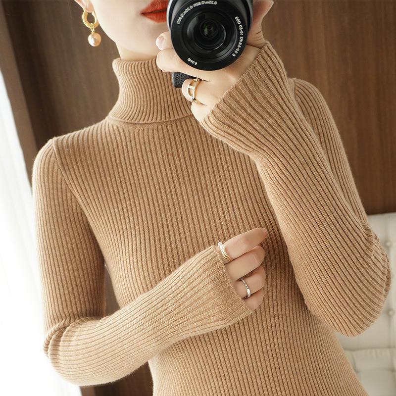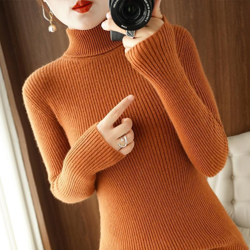 2025年秋冬新作ックセーター女性用スリムフィットベースレイヤーリブ編みニットトップス