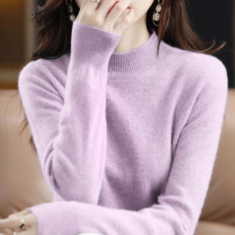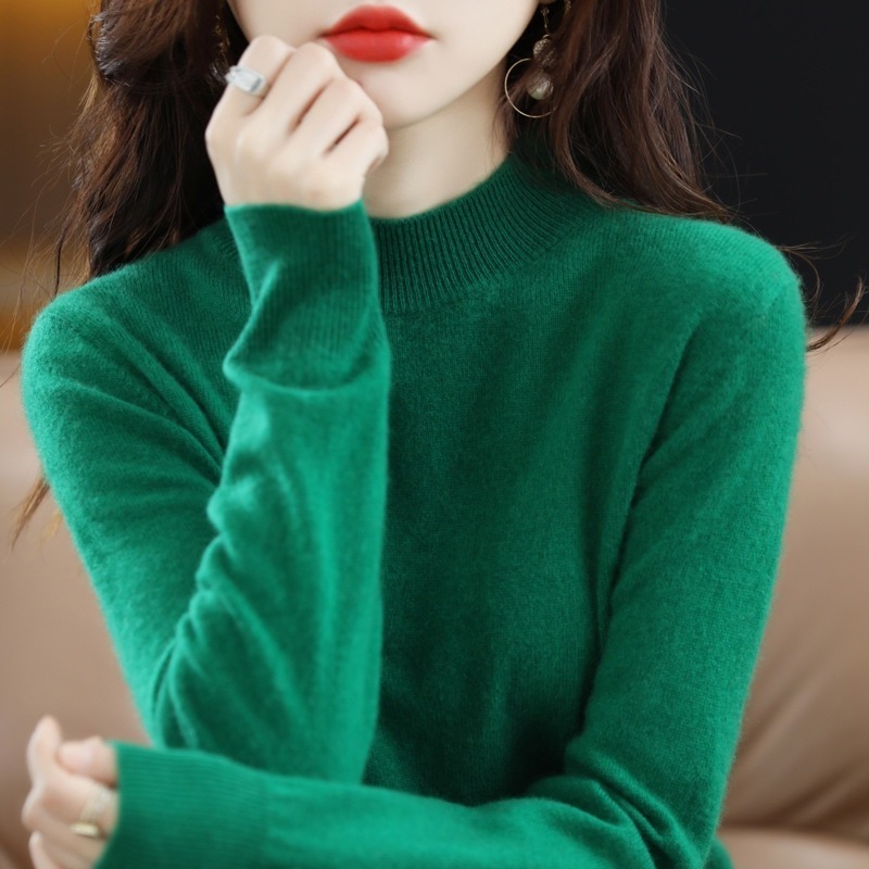 新作ハーフタートルネック ニットトップス 女性用 秋冬ショート丈 プルオーバー 単色ゆったりセーター インナー