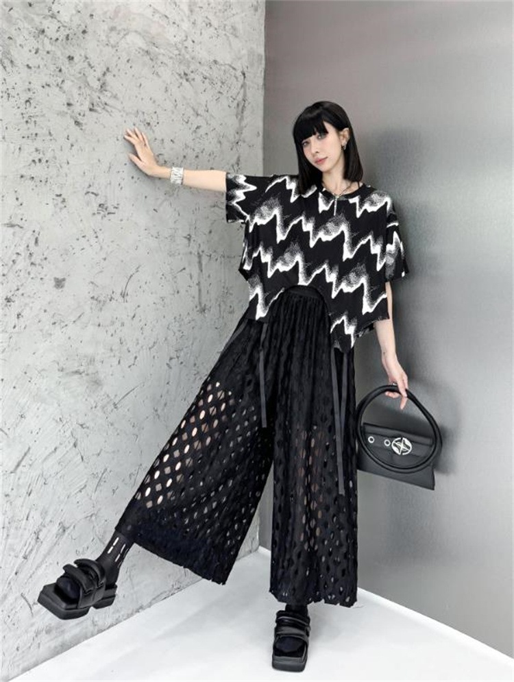 INSスタイル レディース レース切り替え ワイドストレートロングパンツ 2026 夏 薄手素材 ゆったりサイズ 体型カバー スッキリシルエット カジュアル デイリー使いに適したパンツ